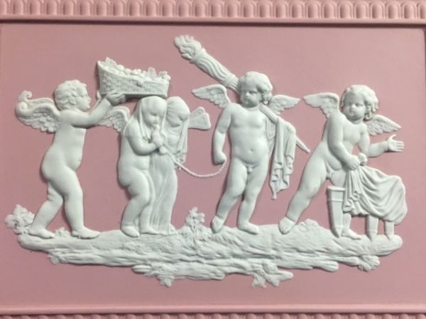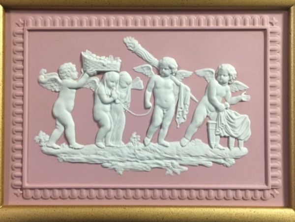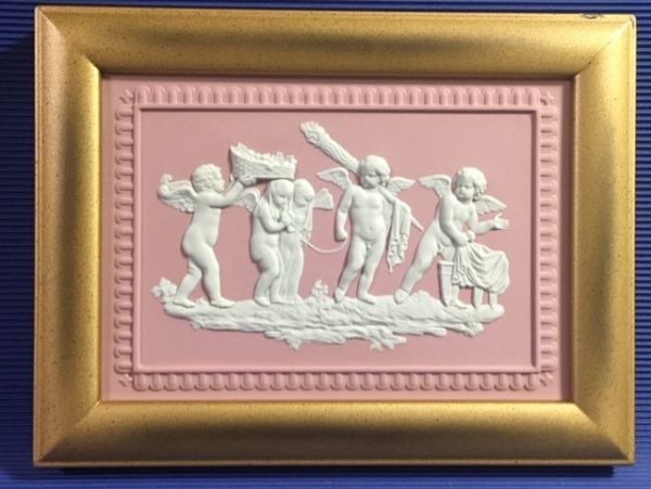 ◎ウェッジウッド  ピンクジャスパー 大型陶板 「天使」 額縁◎y7美品