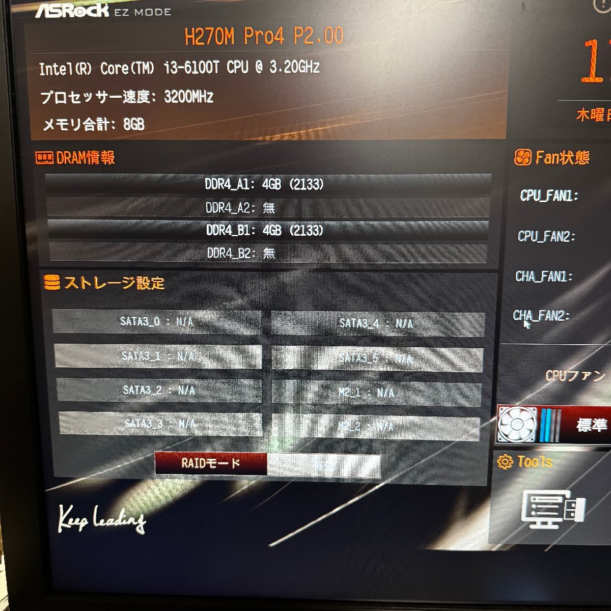 ASRock H270M Pro4 Core i3-6100T CPU メモリ 8GBです。