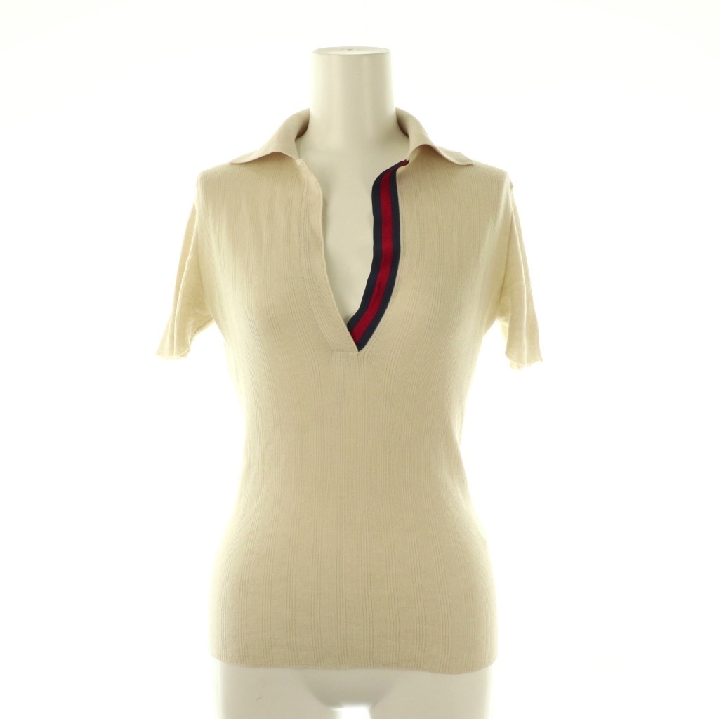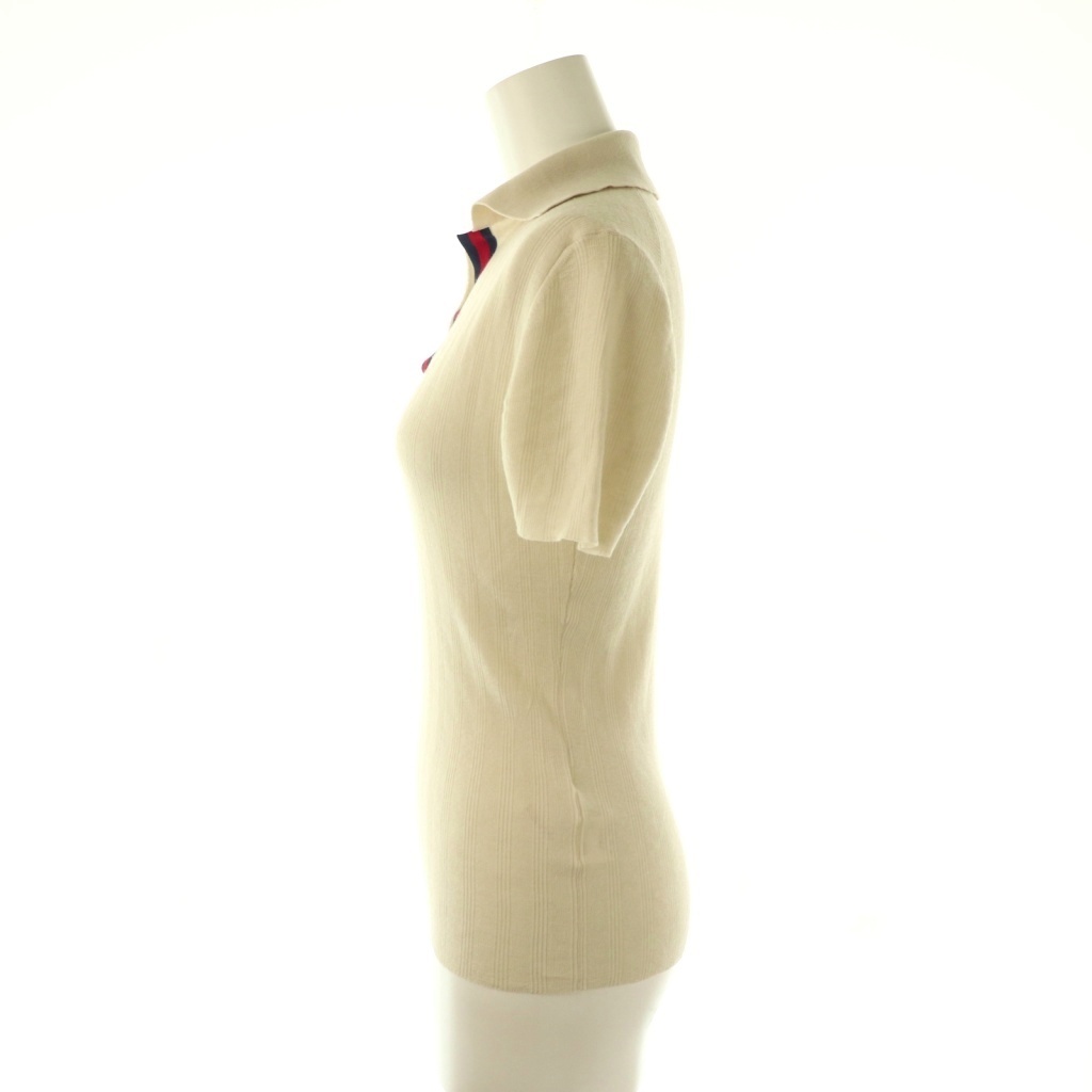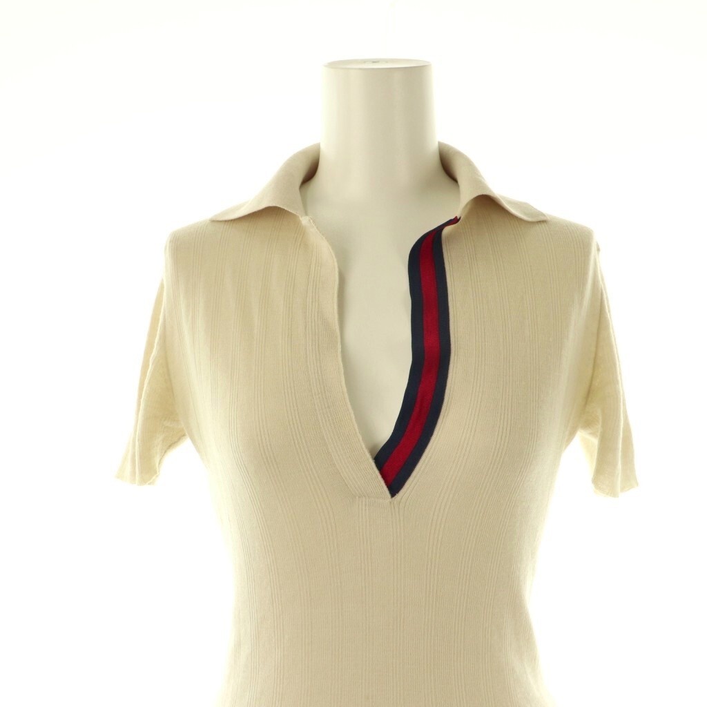 グッチ GUCCI トップス 半袖ニット セーター スキッパー 薄手 XS ライトベージュ ネイビー レッド /ES ■GY53 レディース
