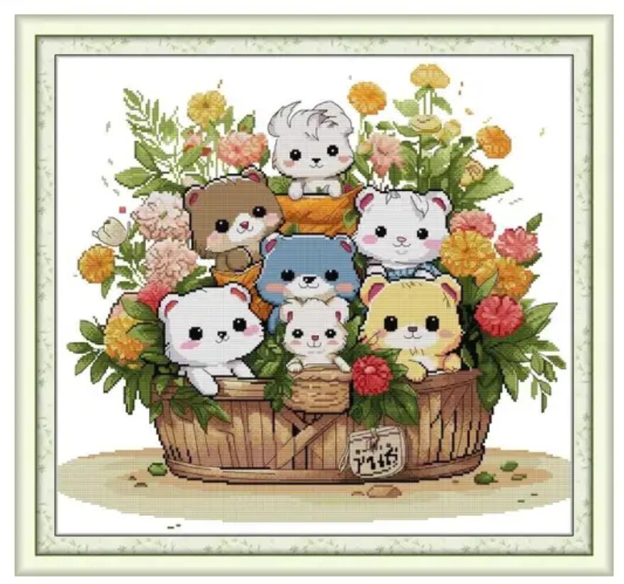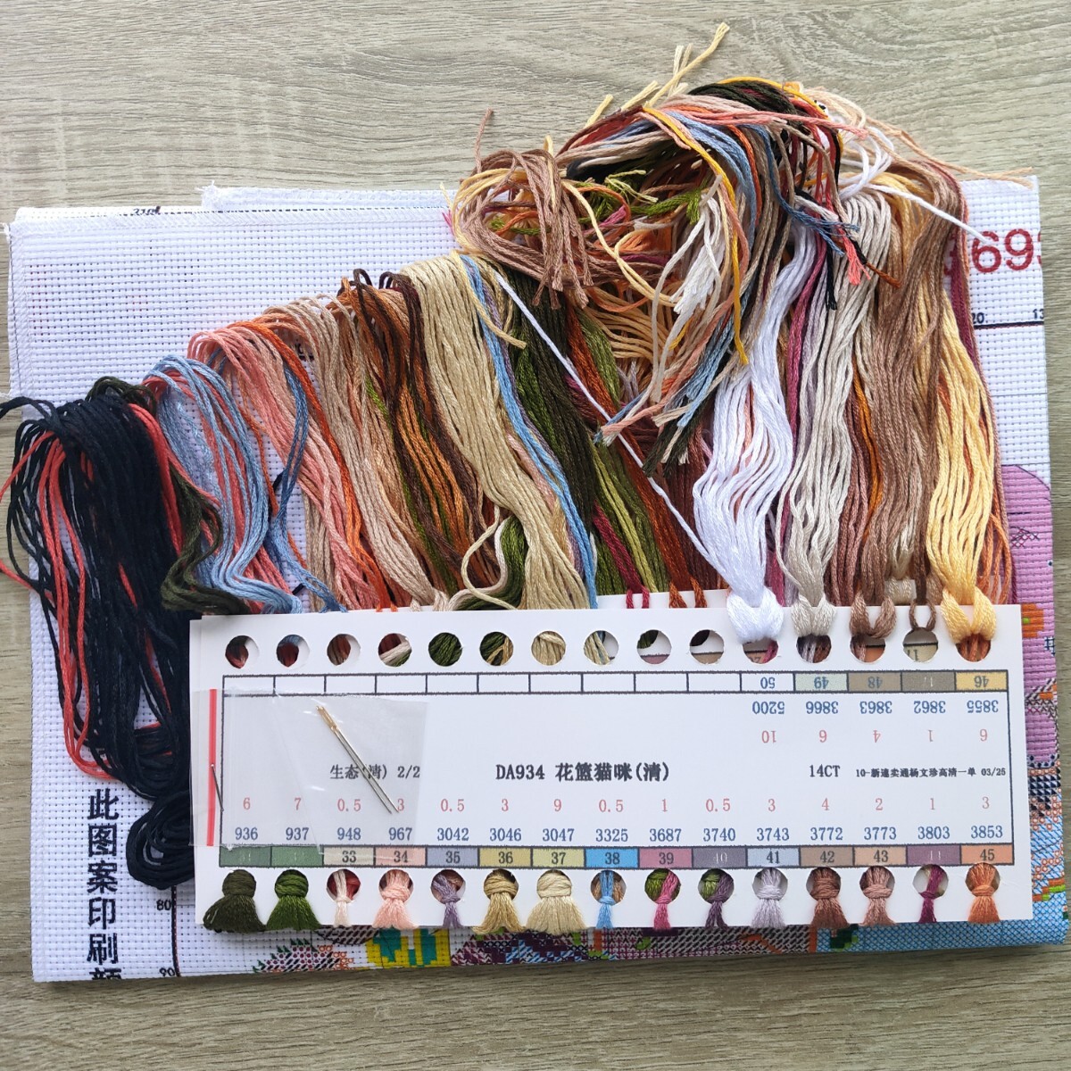刺繍糸は余分に見積もって入っていますが、製作中もし足りなくなった場合は、ご自身でご用意ください。DMCの糸番号に対応しています。検品のため1度開封しています。