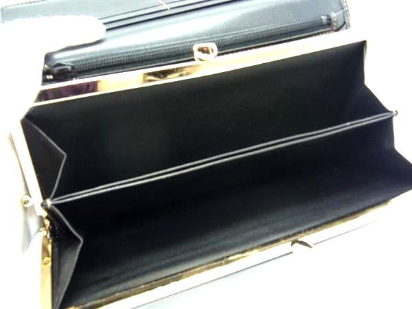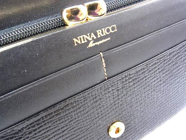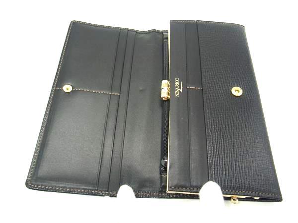 ■極美品■ NINA RICCI ニナリッチ レザー がま口 二つ折り 長財布 ウォレット 札入れ 小銭入れ レディース ブラック系 DH7359