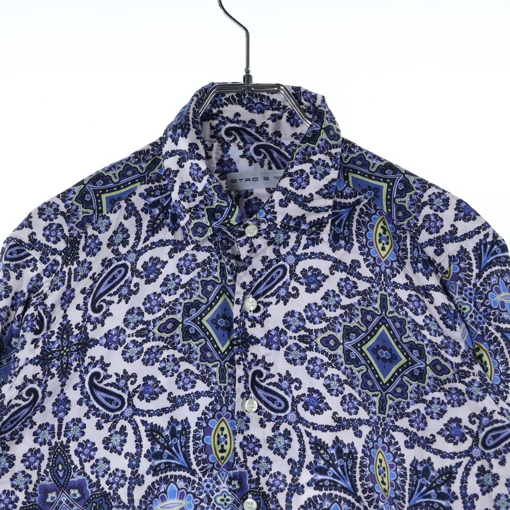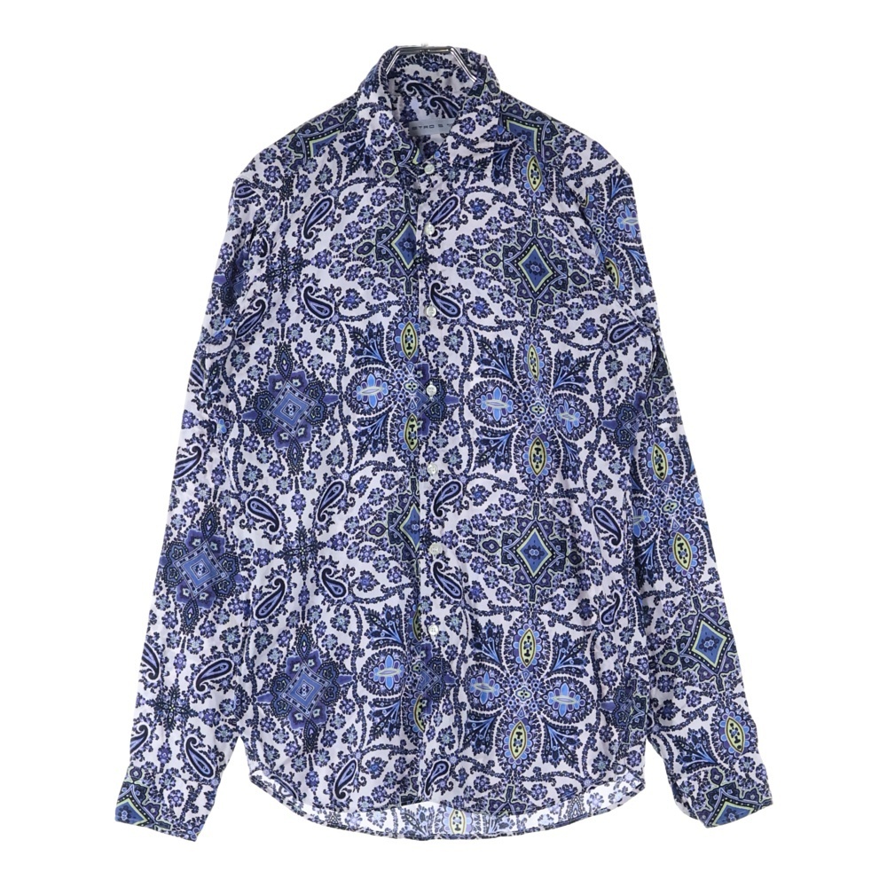 ETRO エトロ フラワー ペイズリー総柄 ロングスリーブ 長袖シャツ ブルー