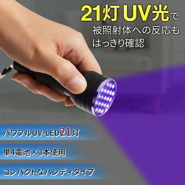 紫外線ライト LED 21灯 懐中電灯 ジェルネイル 硬化 鑑定 検査 偽造 確認 ブラックライト 蛍光 軽量 送料無料 100T◇ 紫外線ライト