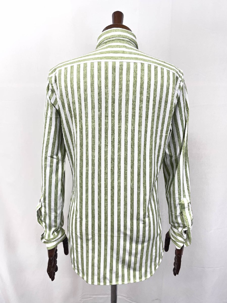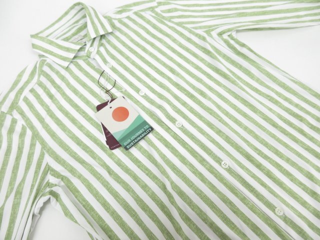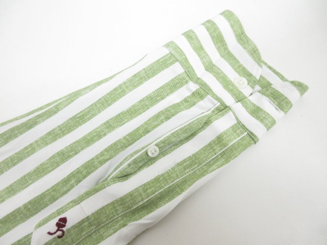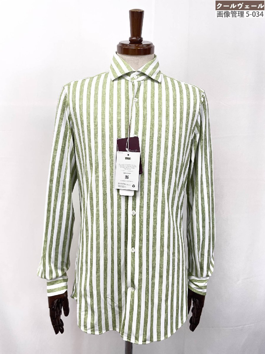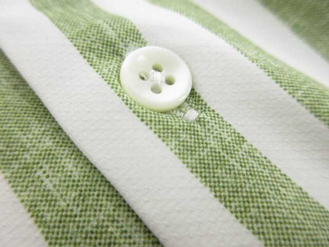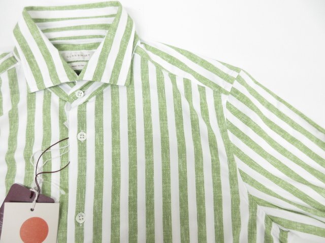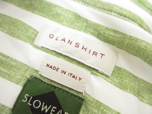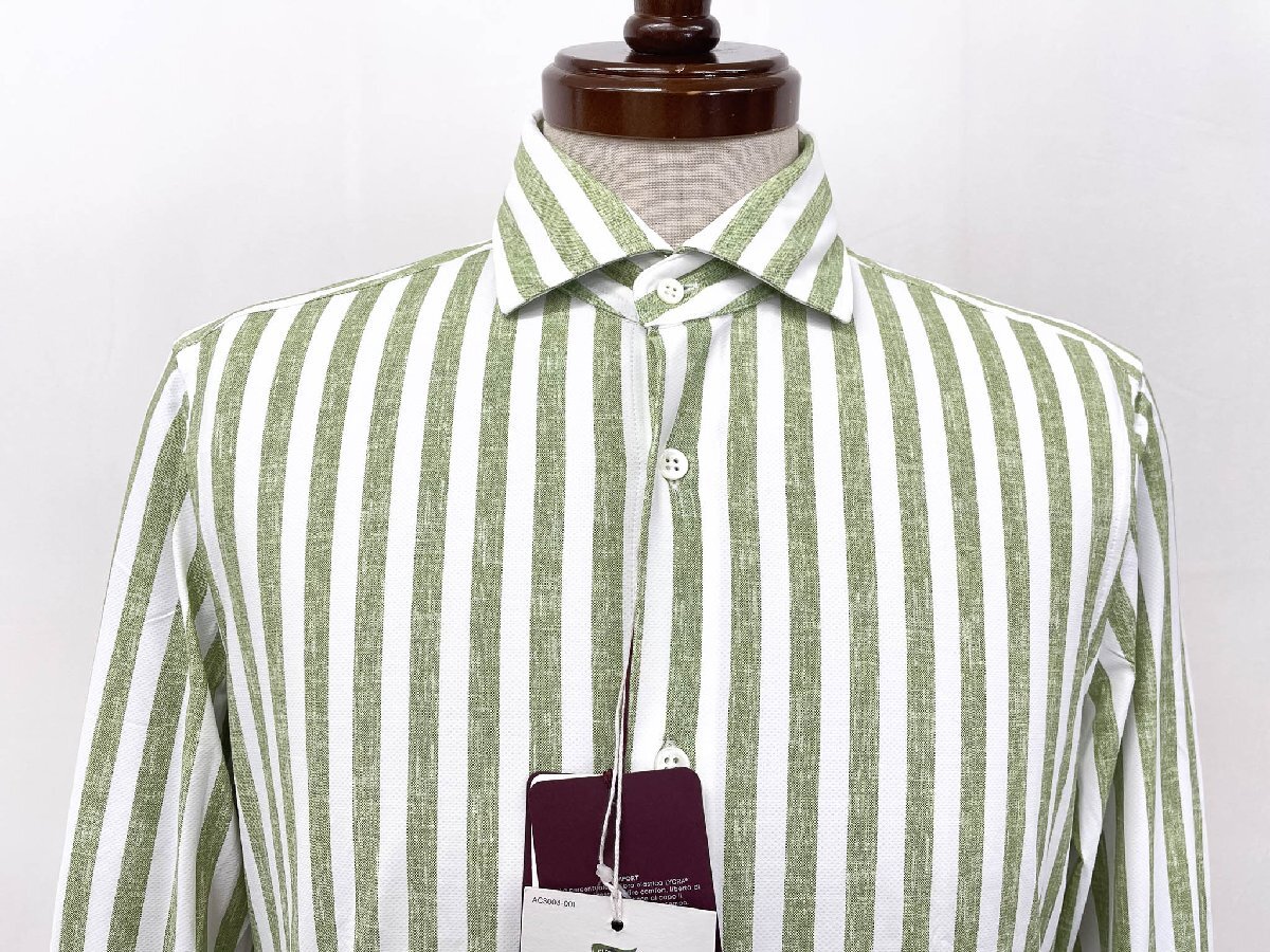 未使用【グランシャツ GLANSHIRT】5XFE01 G9272 700 定価45100円 ホリゾンタルカラー 長袖シャツ (メンズ) 38 緑系 ストライプ ◇17GRS250