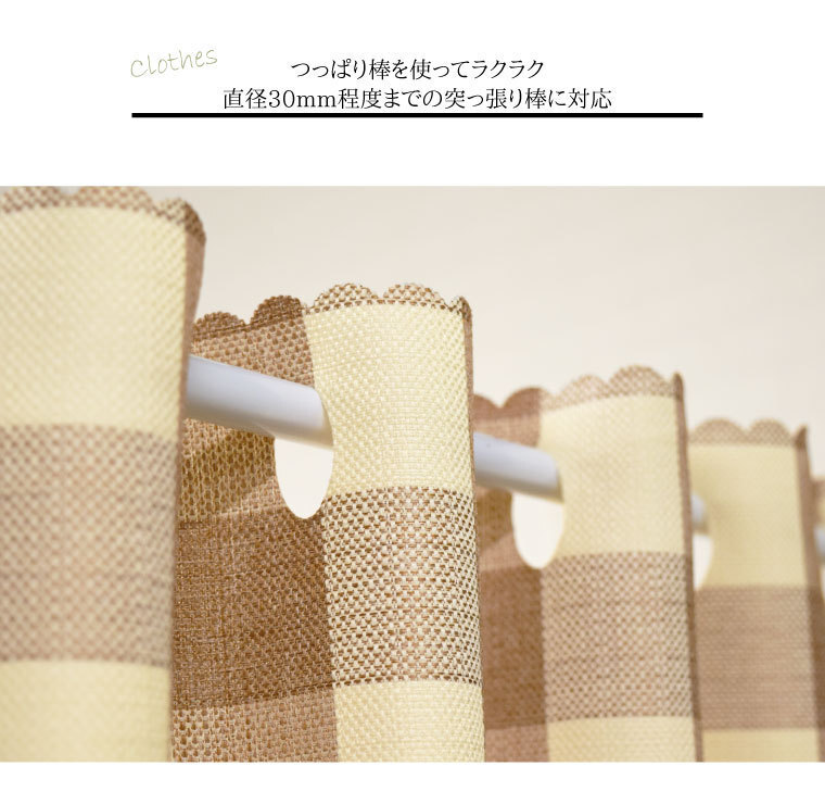 ・突っ張り棒(別売り)を通して手軽に設置できます。小窓にはもちろん、収納棚の目隠しや洗面所・脱衣所にも。 | |