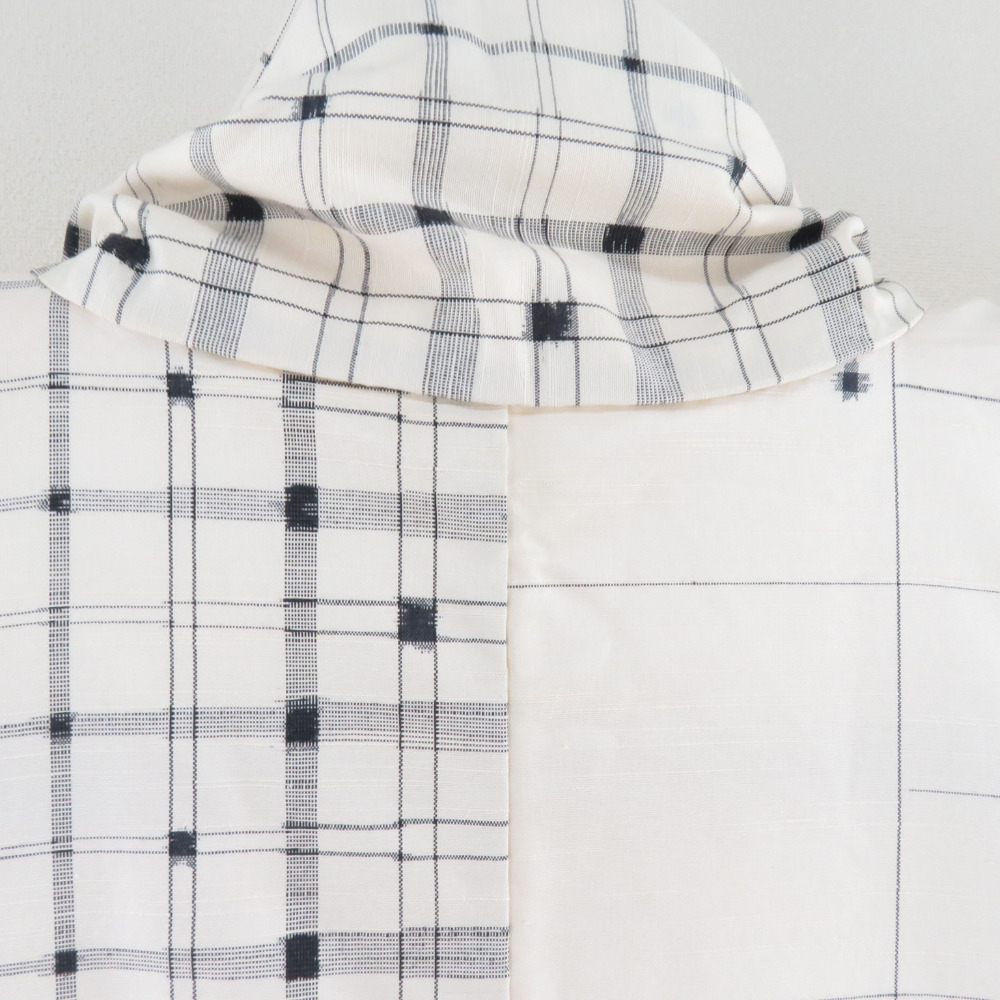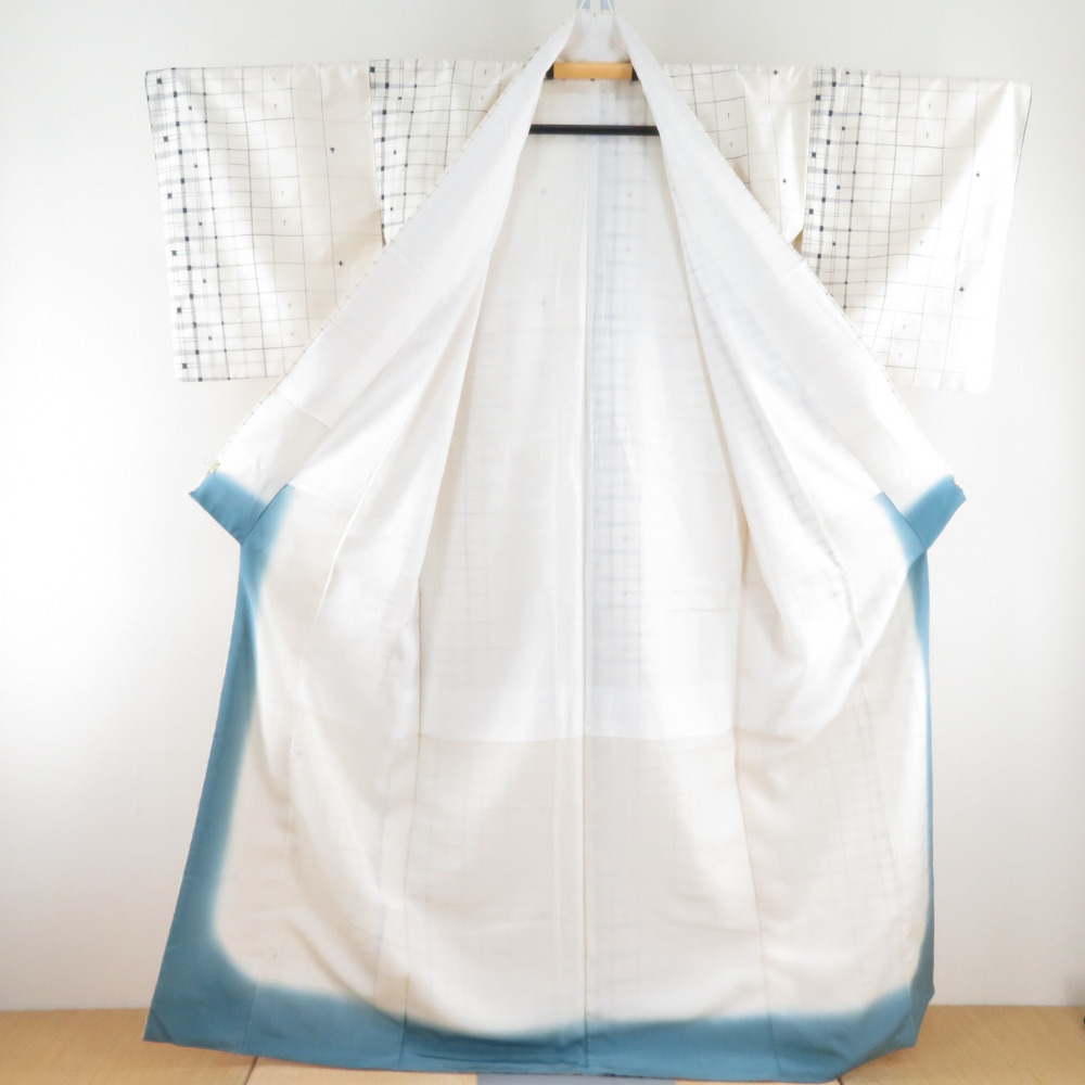 | 紬 着物 変わり格子 白色 袷 広衿 正絹 カジュアル着物 仕立て上がり 身丈161cm |