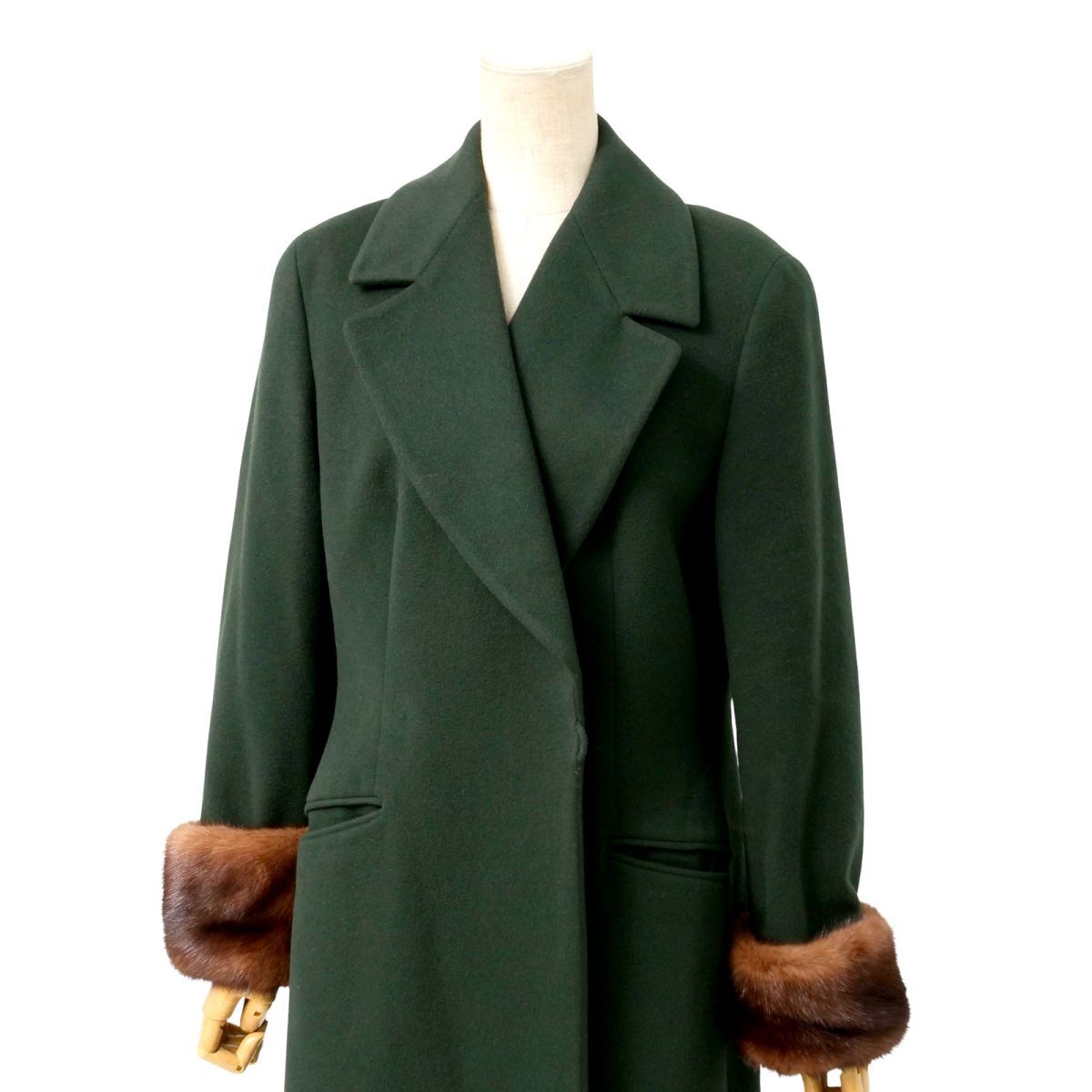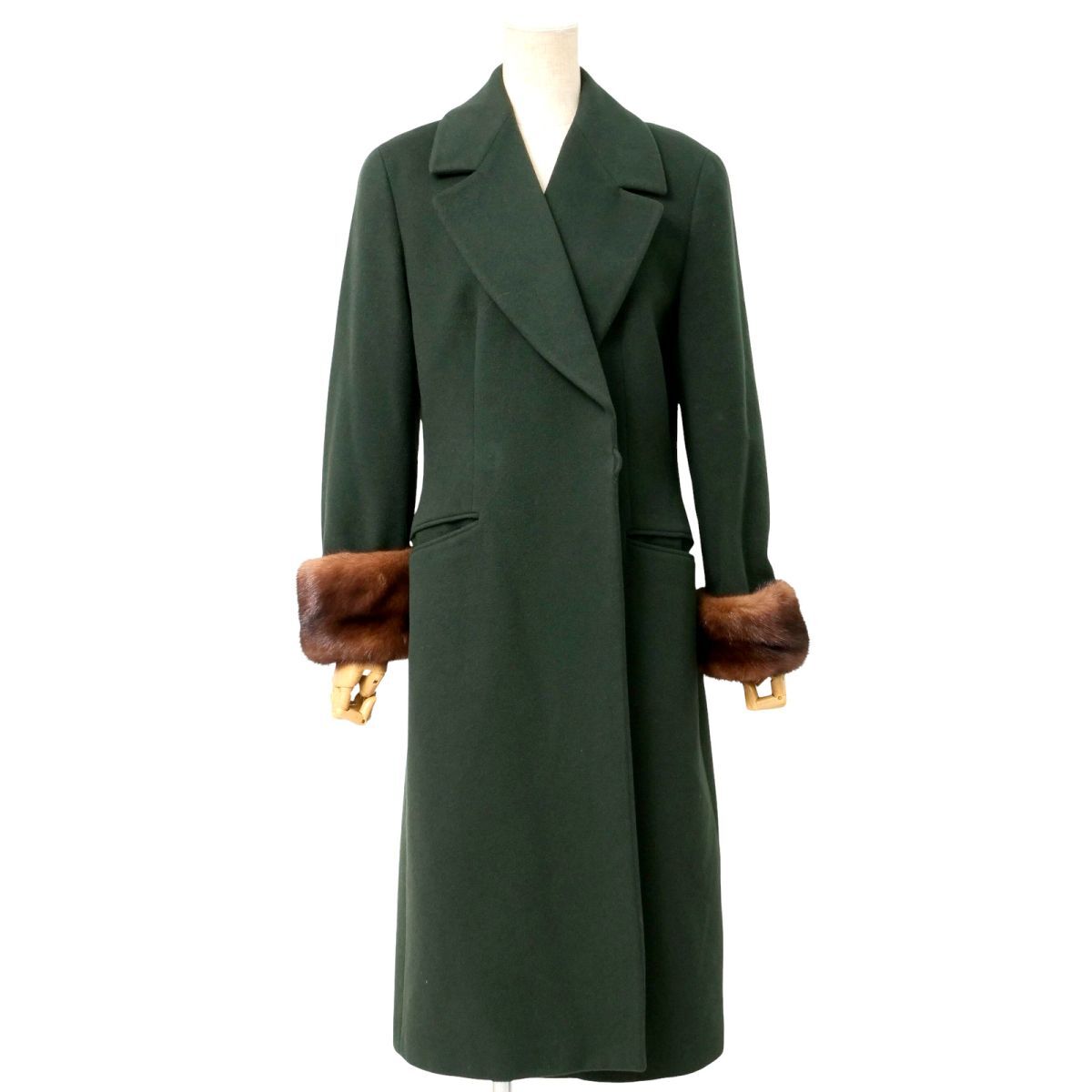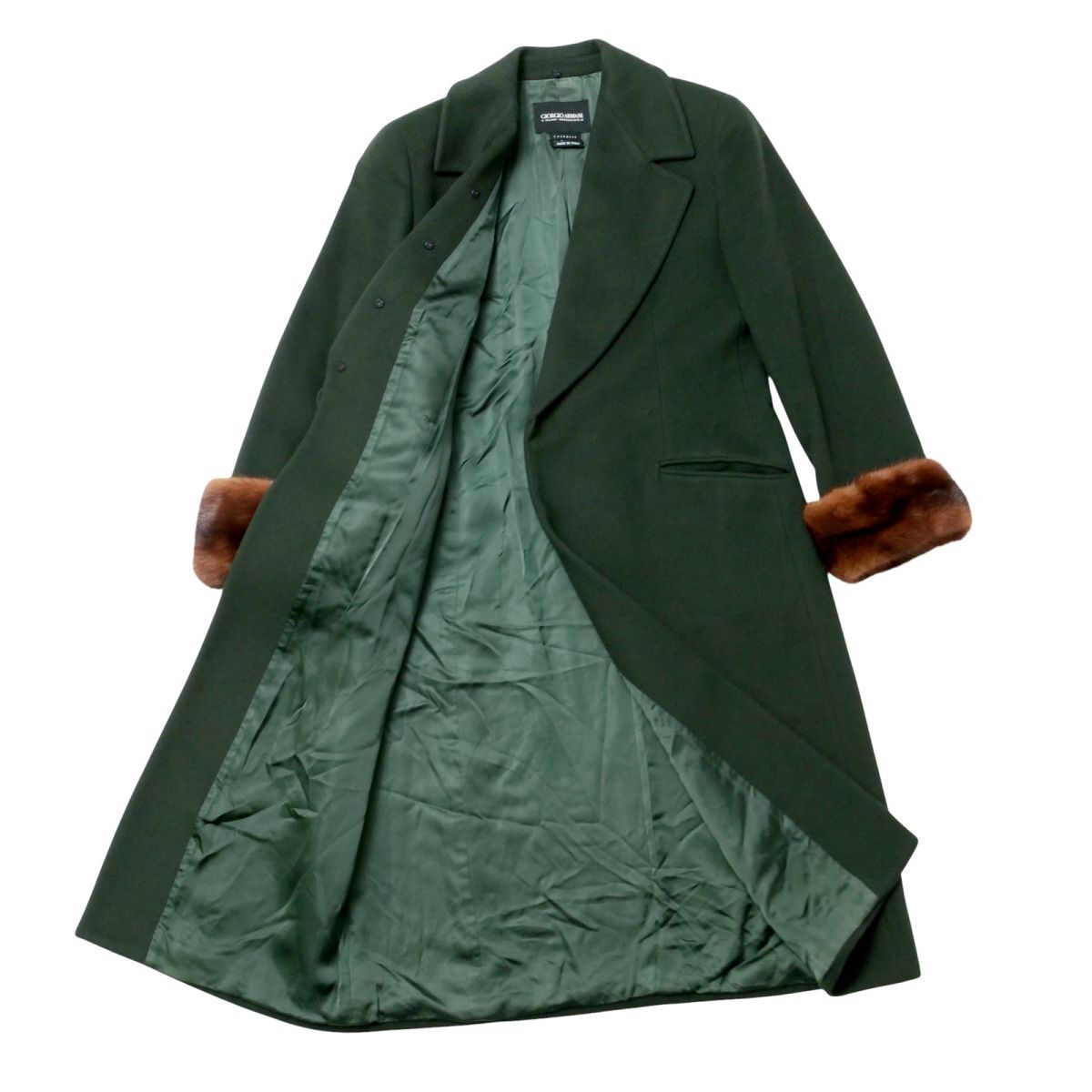 | MI1821#イタリア製*ジョルジオアルマーニ*GIORGIO ARMANI*カシミヤ100%*チェスターコート*ロングウールコート*袖口ファー*グリーン系*38 | |||