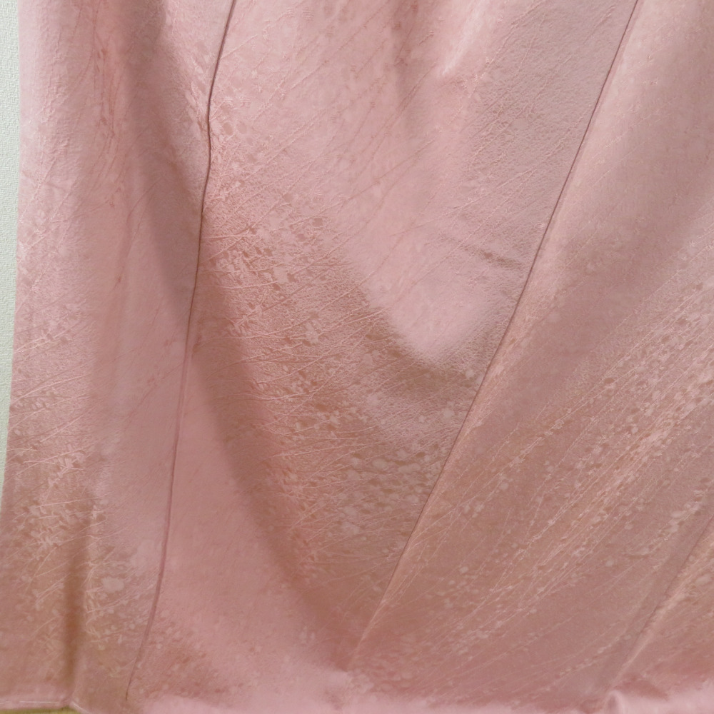 | 色無地 袷 広衿 薄桃紫色 梅地紋入り 正絹 一つ紋 桔梗紋 仕立て上がり着物 身丈165cm |