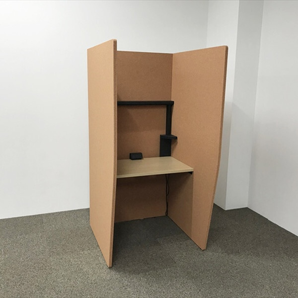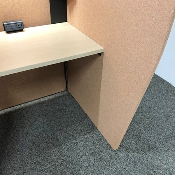 ワーカーを包み込むほどにミニマムで省スペースに設置可能なワークブース。両サイドにパネルがあるため、集中した作業に適しています。