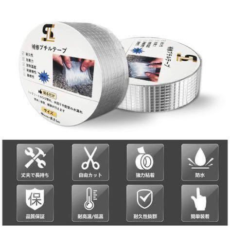強力補修ブチルテープ ひび割れブチルテープ 強力粘着 防水シーラントテープ 材料アップグレード 修理の亀裂テープ 壁 屋根 配管 水漏れ 水回り 自己融着 シール 壁 固定 多用途テープ(サイズ:幅5cm×長さ5m)