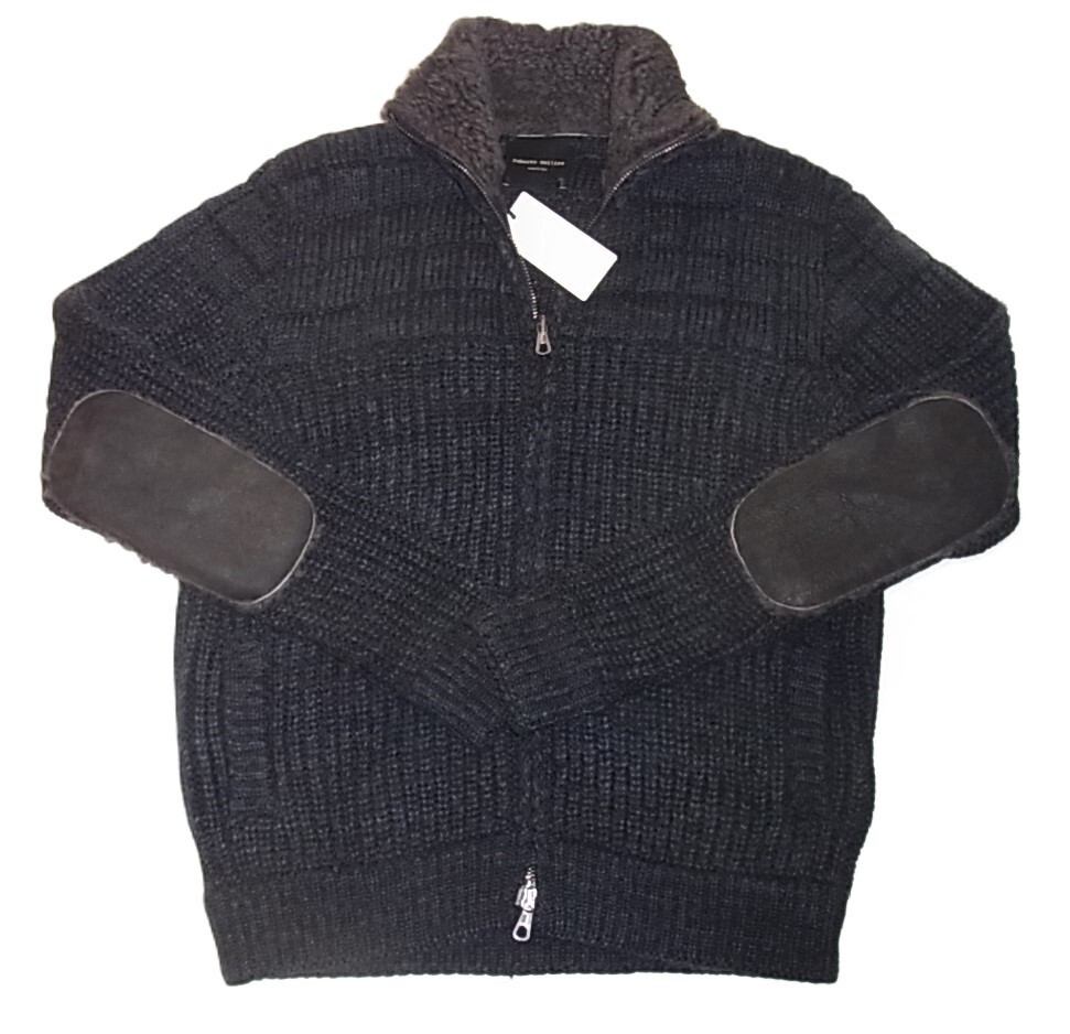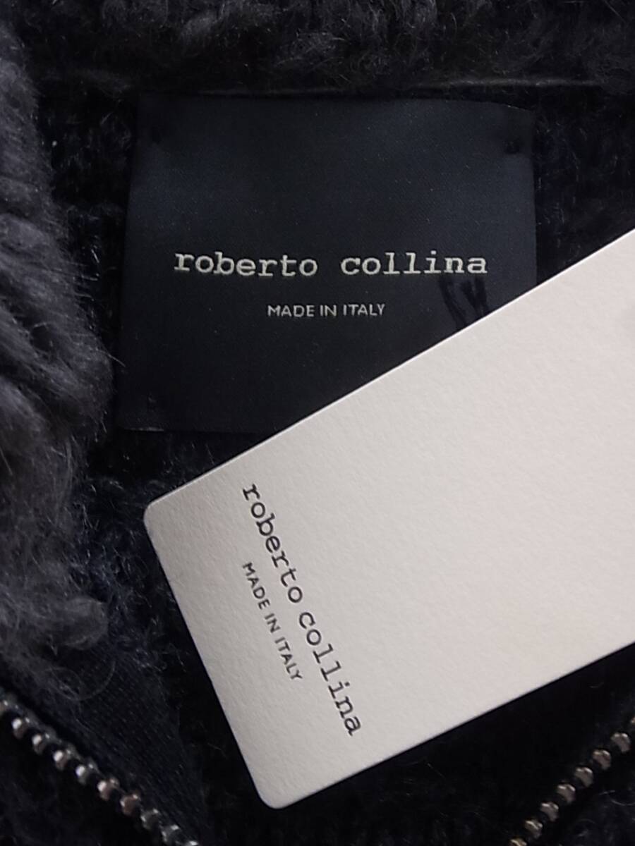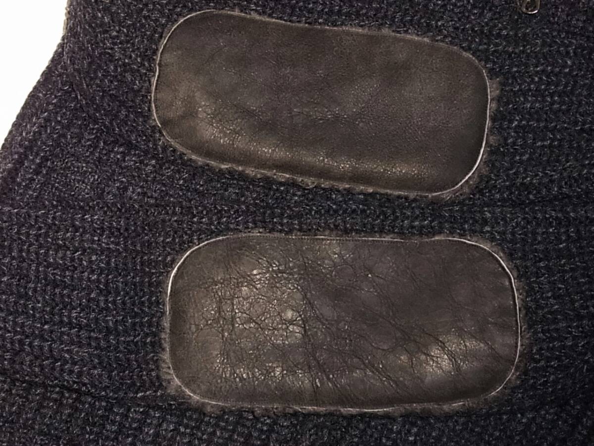 未使用 roberto collinaロベルトコリーナ ムートン レザー エルボーパッチ ニット ブルゾン 48 ボア セーター カーディガン ポケット付