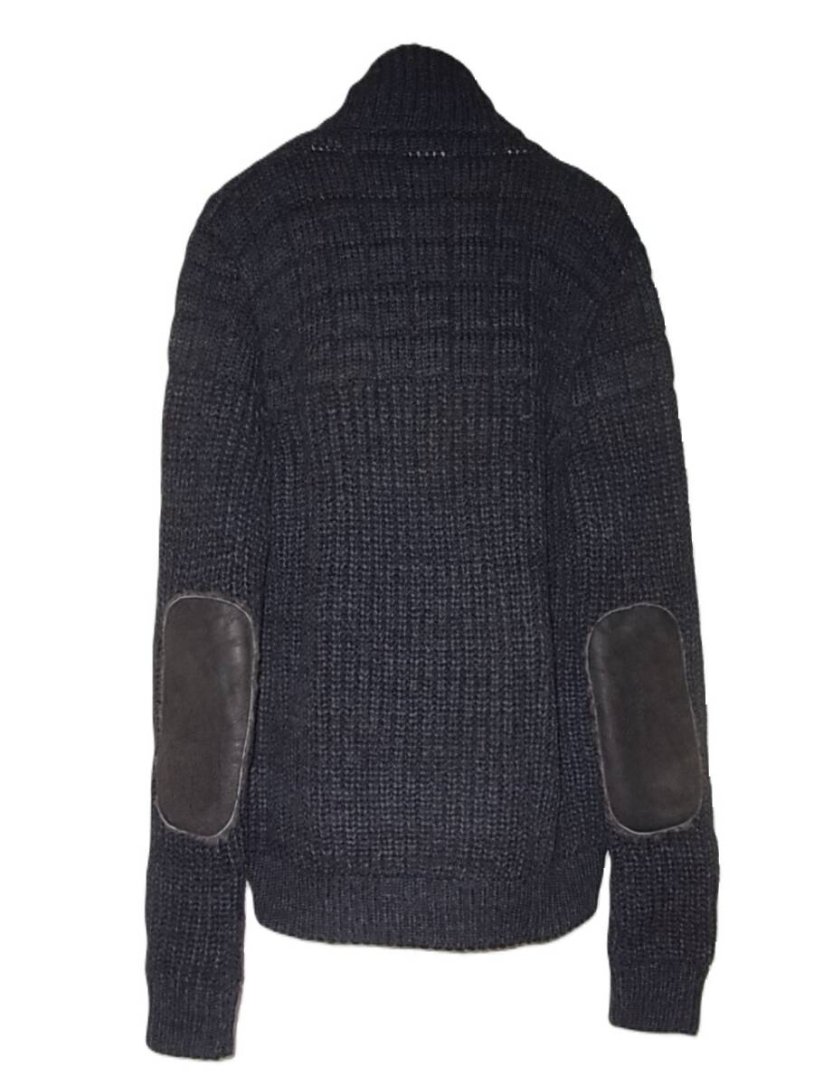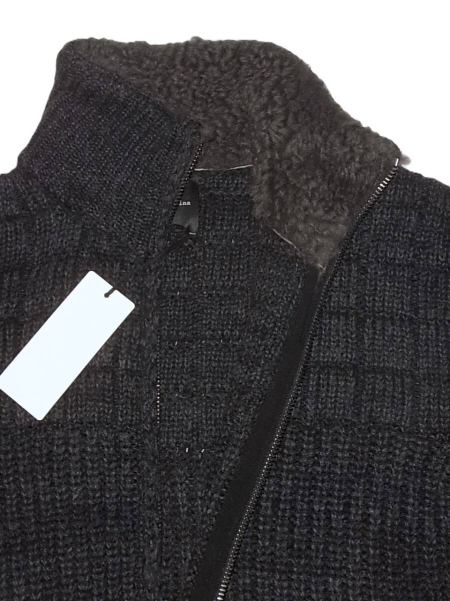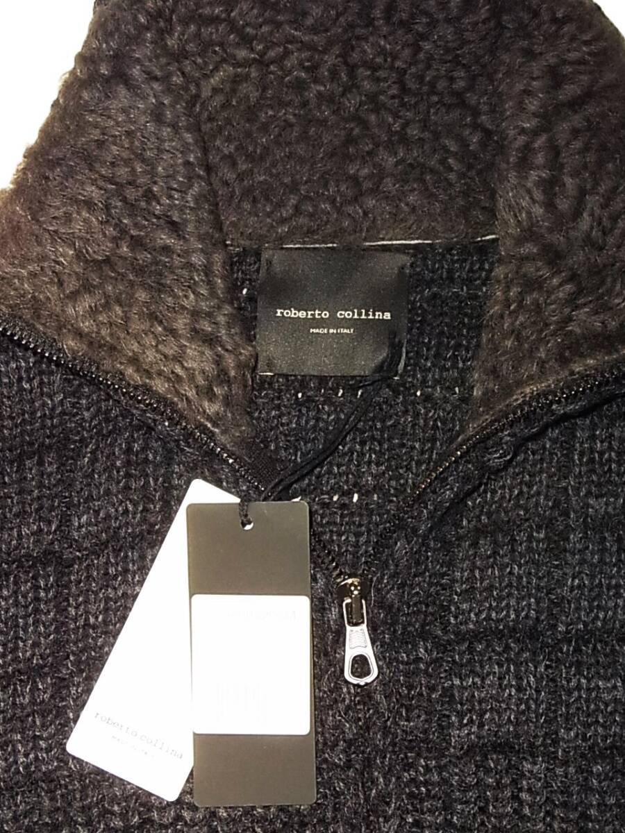 未使用 roberto collinaロベルトコリーナ ムートン レザー エルボーパッチ ニット ブルゾン 48 ボア セーター カーディガン ポケット付