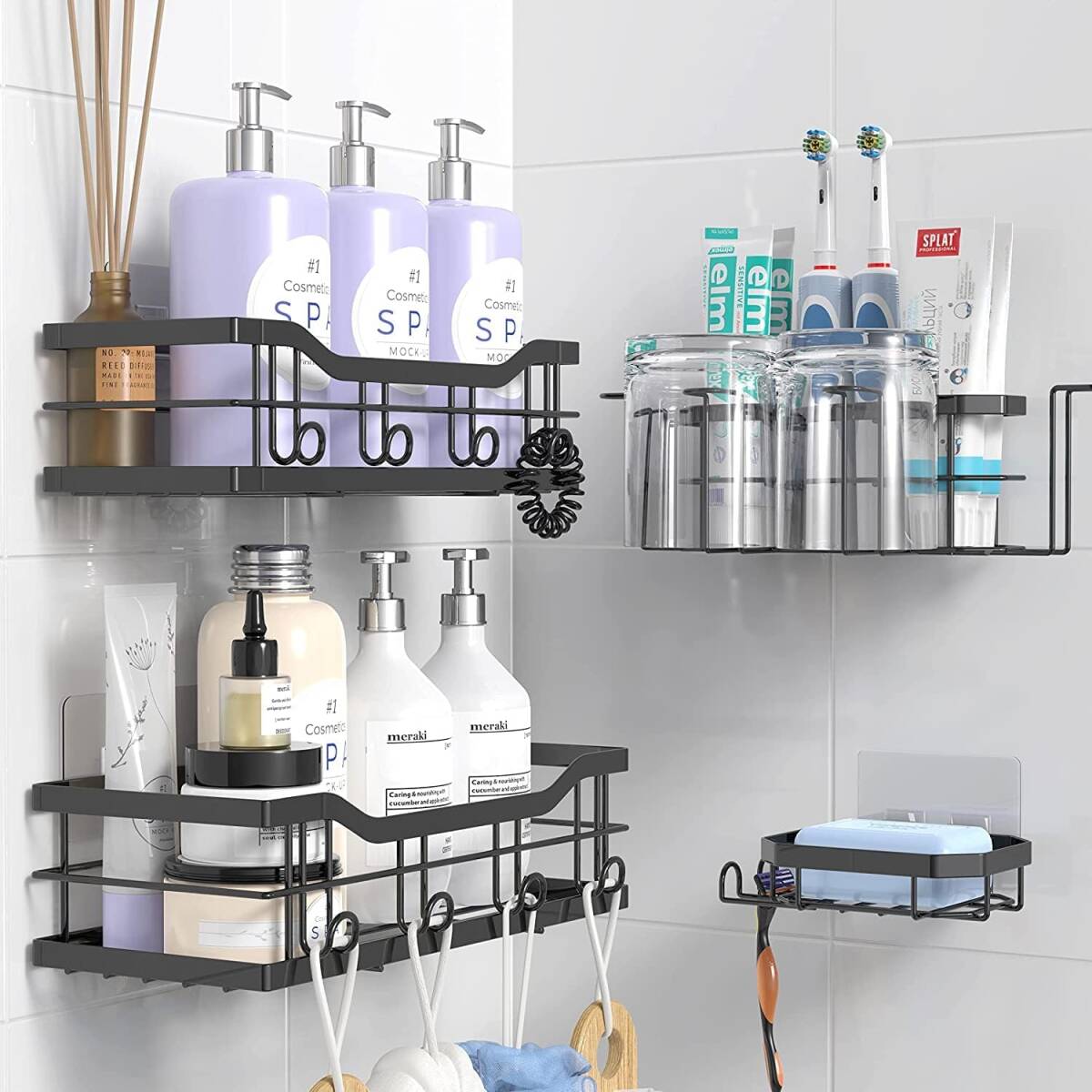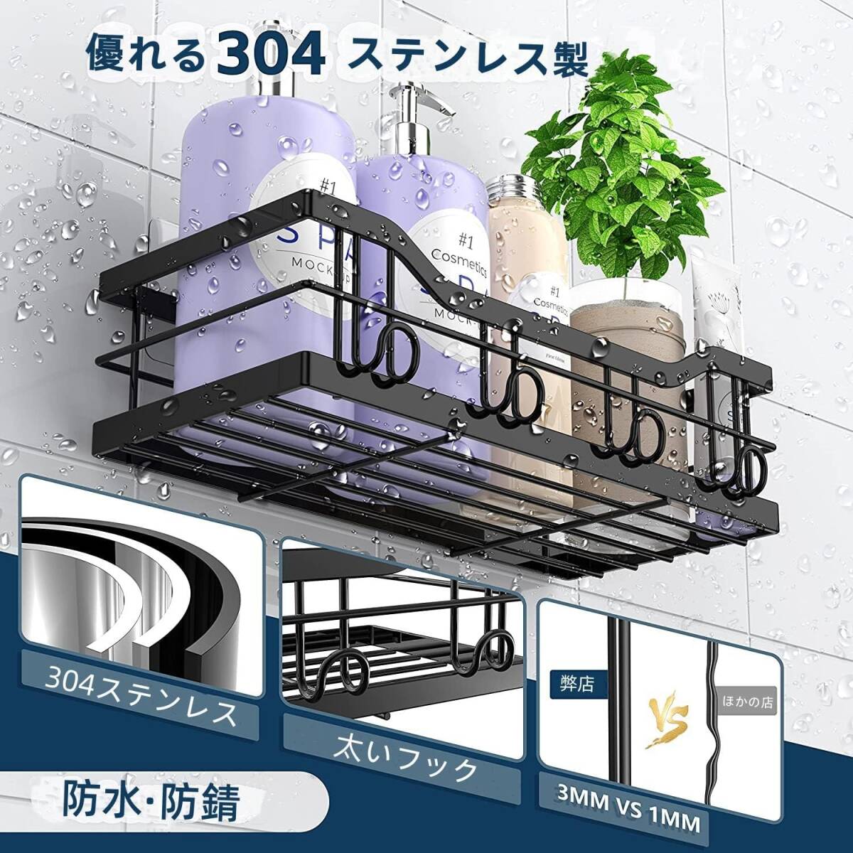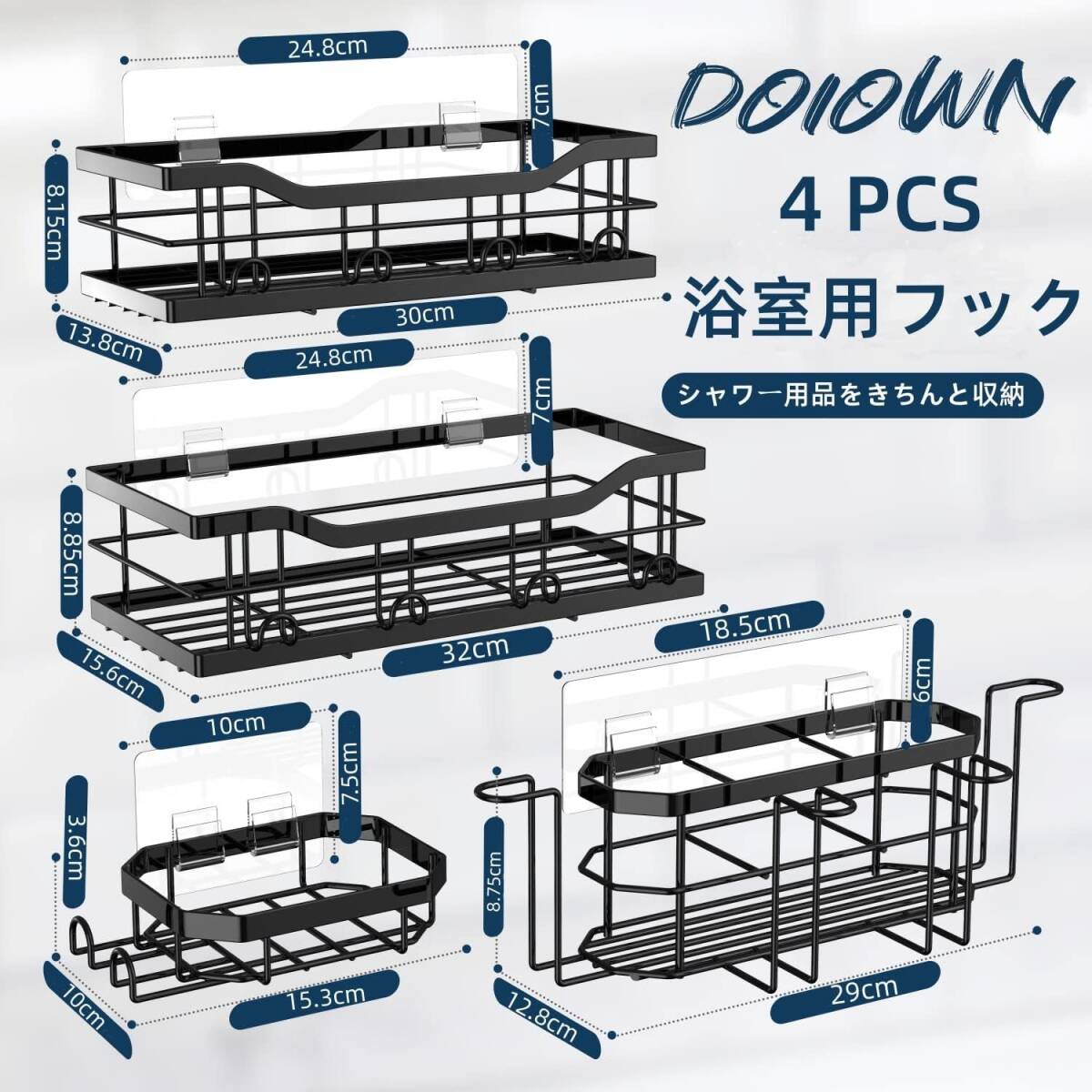 DOIOWN お風呂 ラック 浴室用ラック シャンプーラック 4段式 キッチン 洗面所 お風呂場 浴室 収納 壁掛け式 穴あけ不要 ステンレス