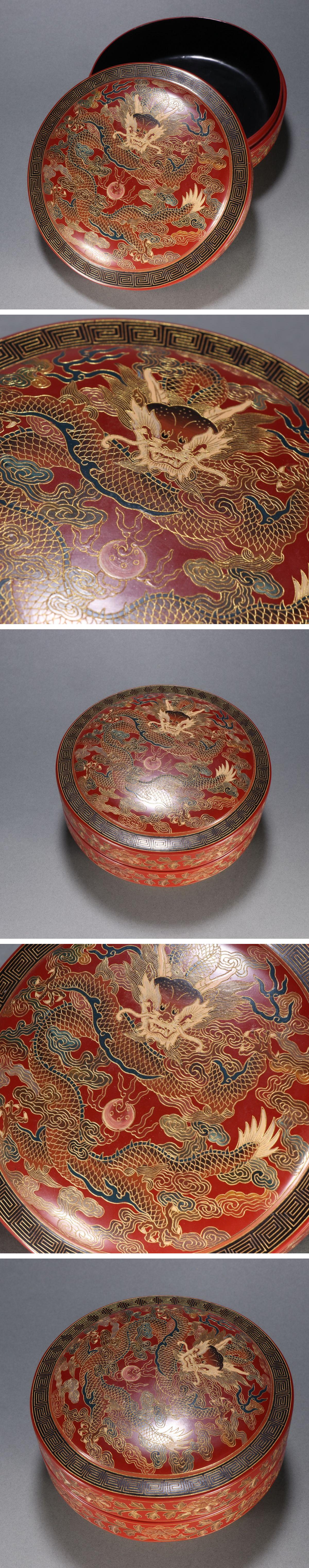 【清】某有名オークション購入 清時代 脱胎漆塗 雲龍戯珠紋蓋物 材質保証 当時物保証 古置物 古擺件 古美術 時代コレクション7L10-DD
