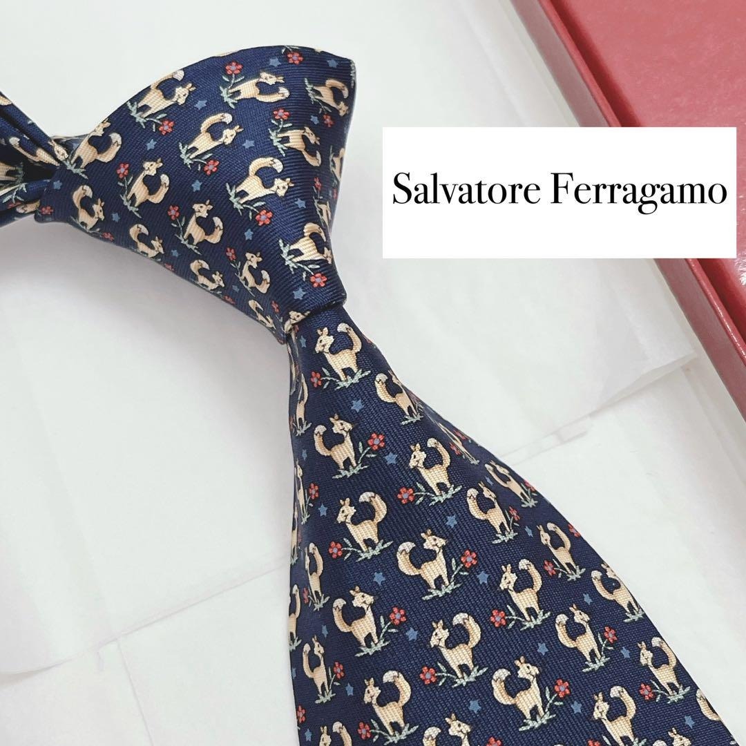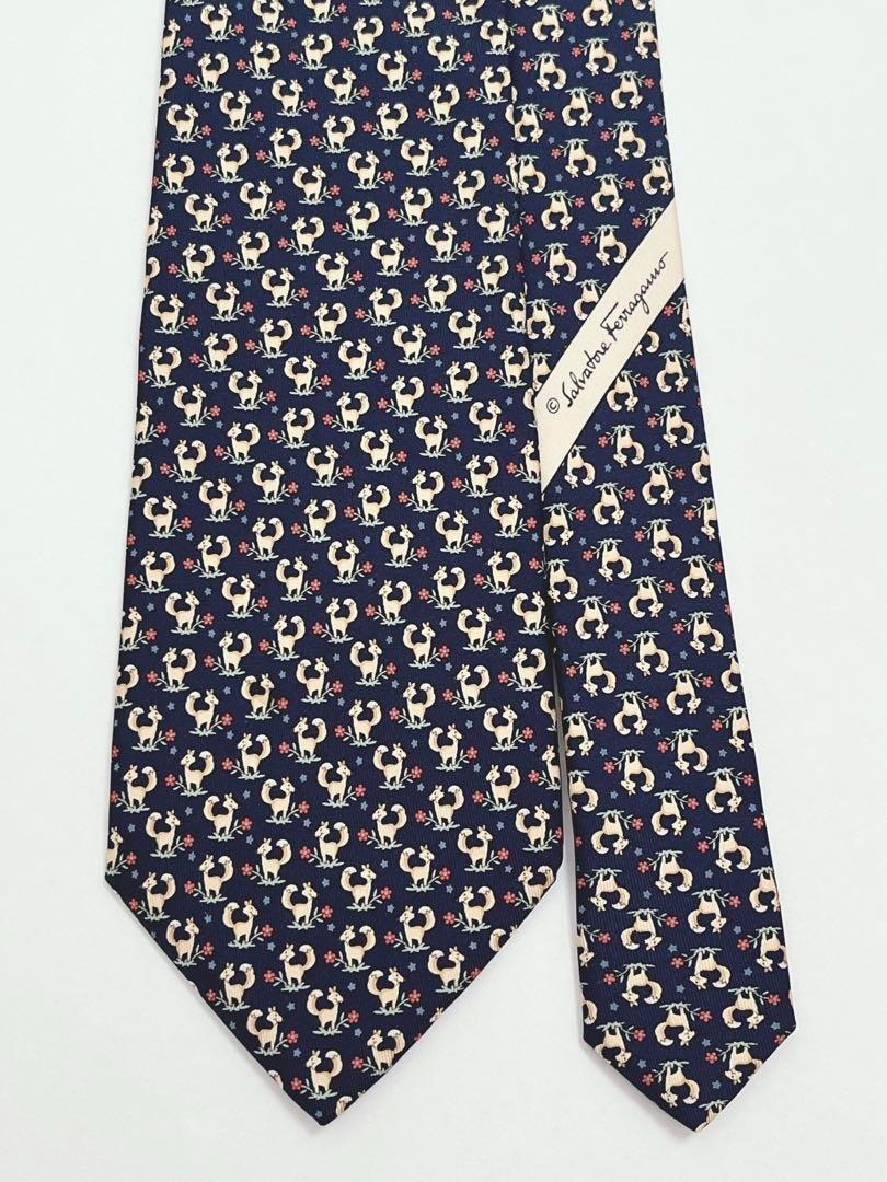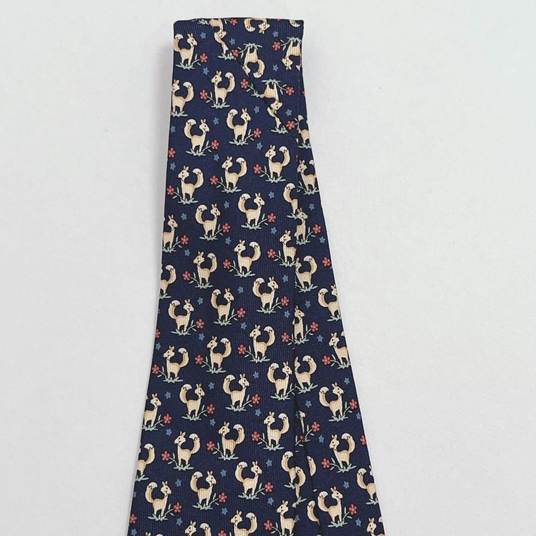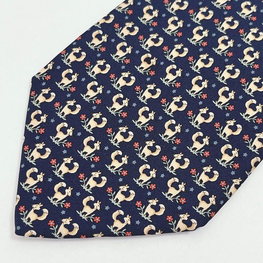 絹(シルク)100% イタリア製 アニマル 動物 フォックス 狐 フラワー 花 総柄のネクタイです!