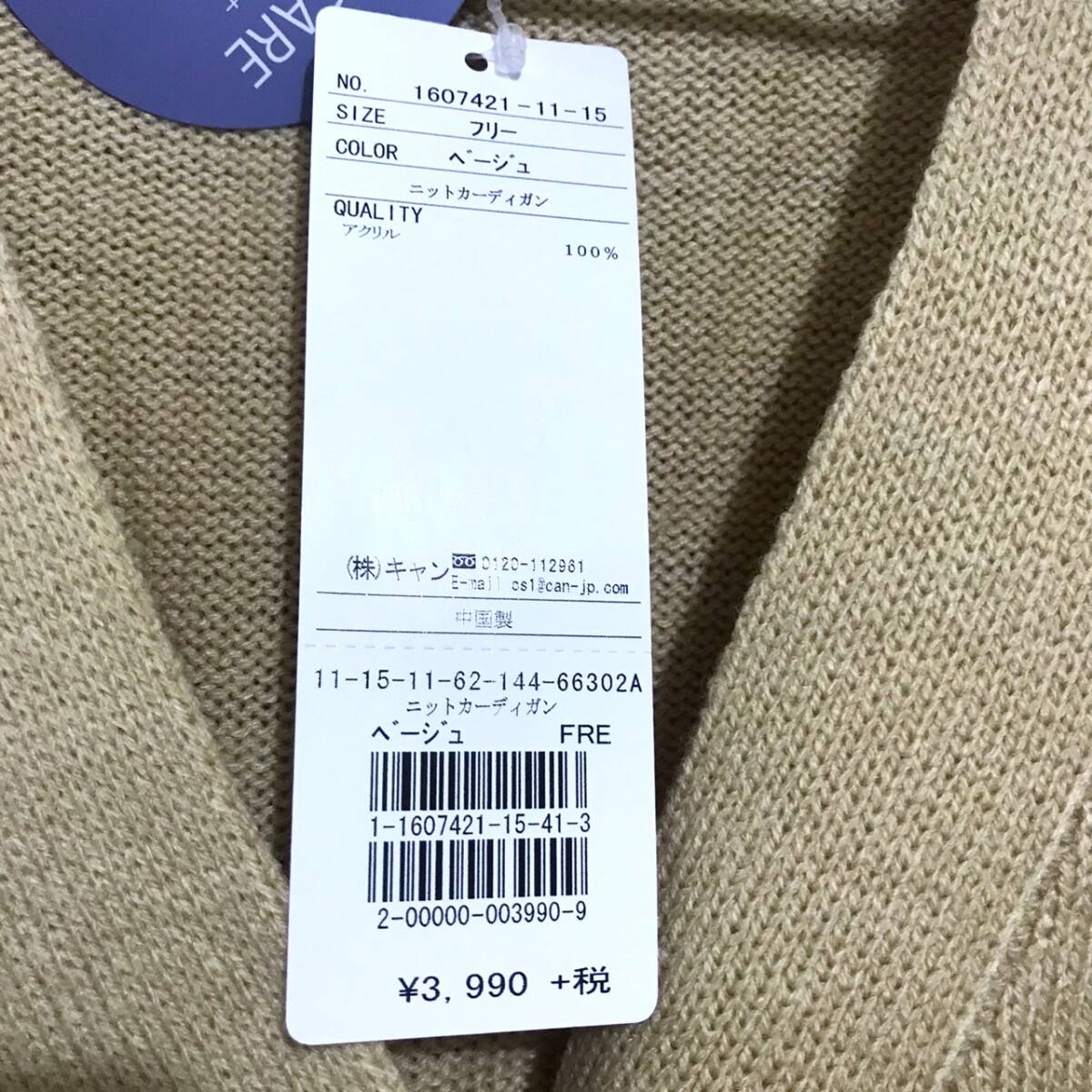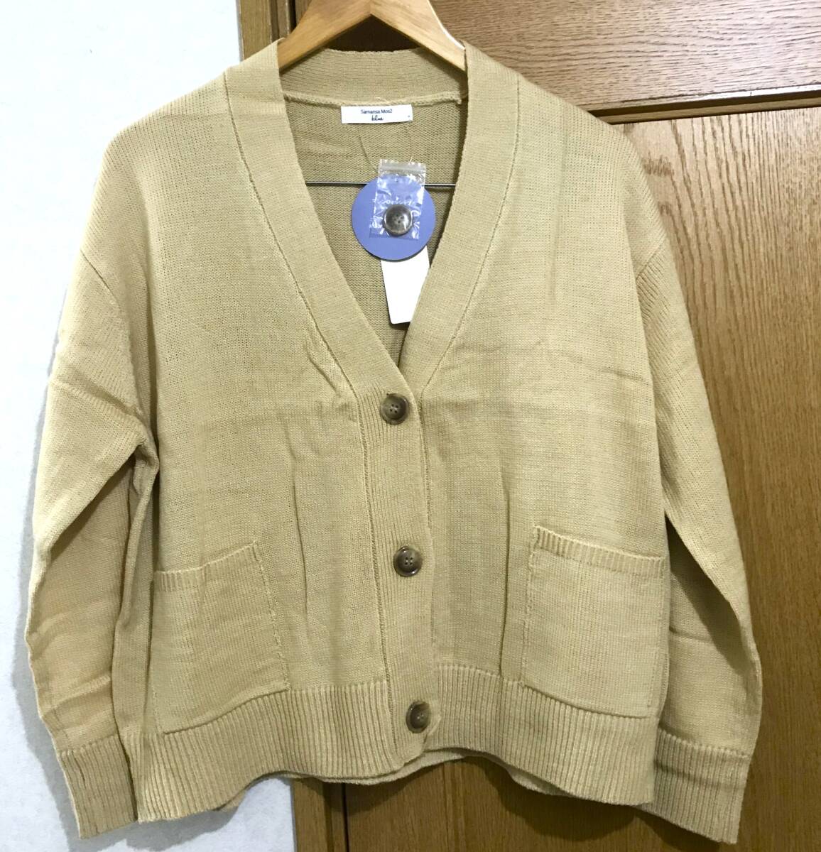 新品 サマンサモスモス ブルー Samansa Mos2 blue ニットカーディガン  ベージュ フリーサイズ アクリル100% カーディガン