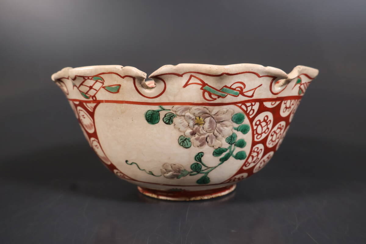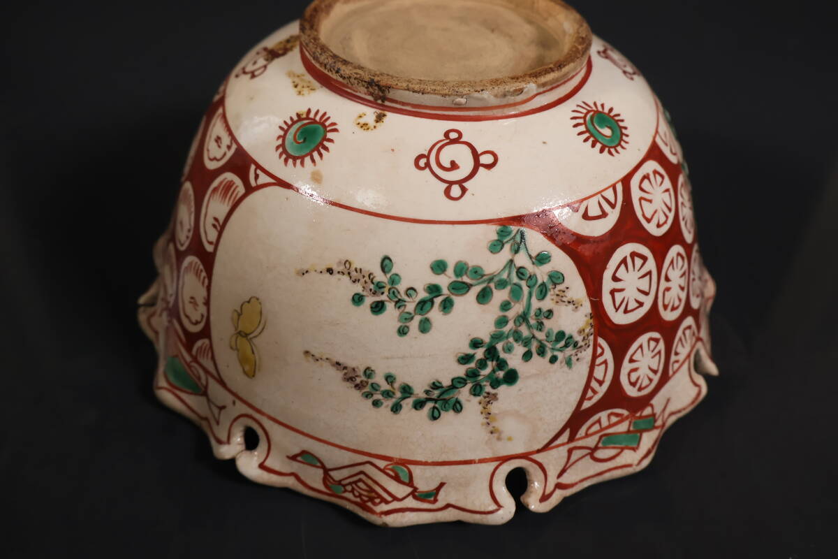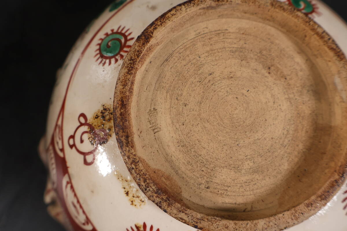 【和】(A3594) 時代古作 萬古焼 赤絵菓子器 鉢 在銘有 茶道具