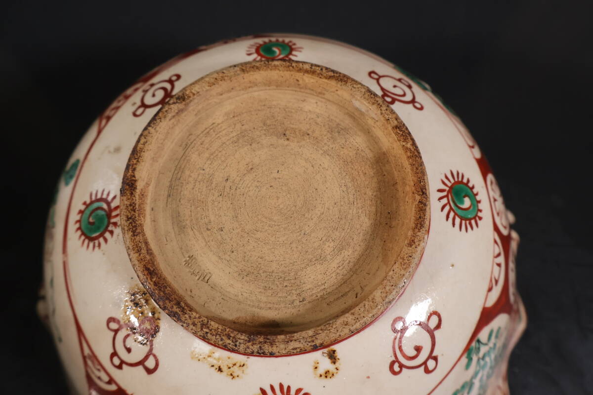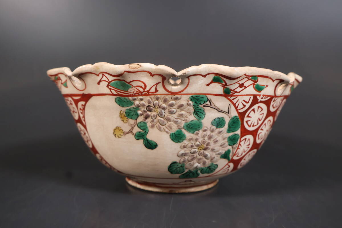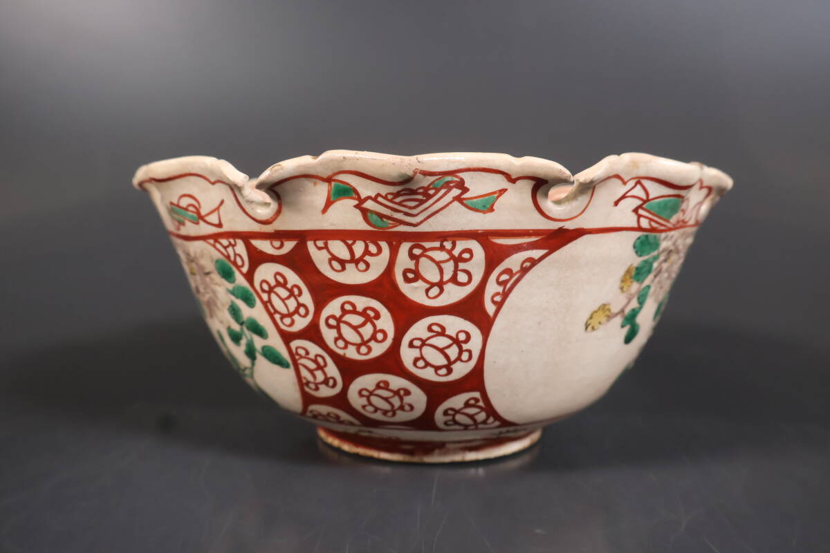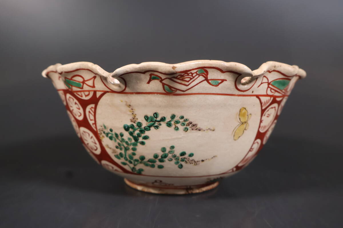 【和】(A3594) 時代古作 萬古焼 赤絵菓子器 鉢 在銘有 茶道具
