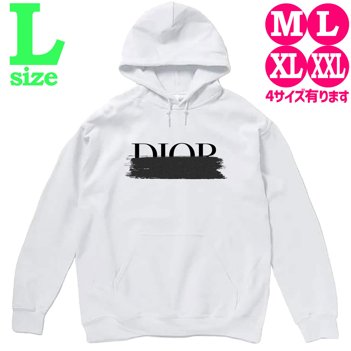ロゴデザイン ペンキ柄 プリント プルオーバー パーカー 8oz ユニセックス 大きいサイズ ビッグシルエット ホワイト M L XL XXL