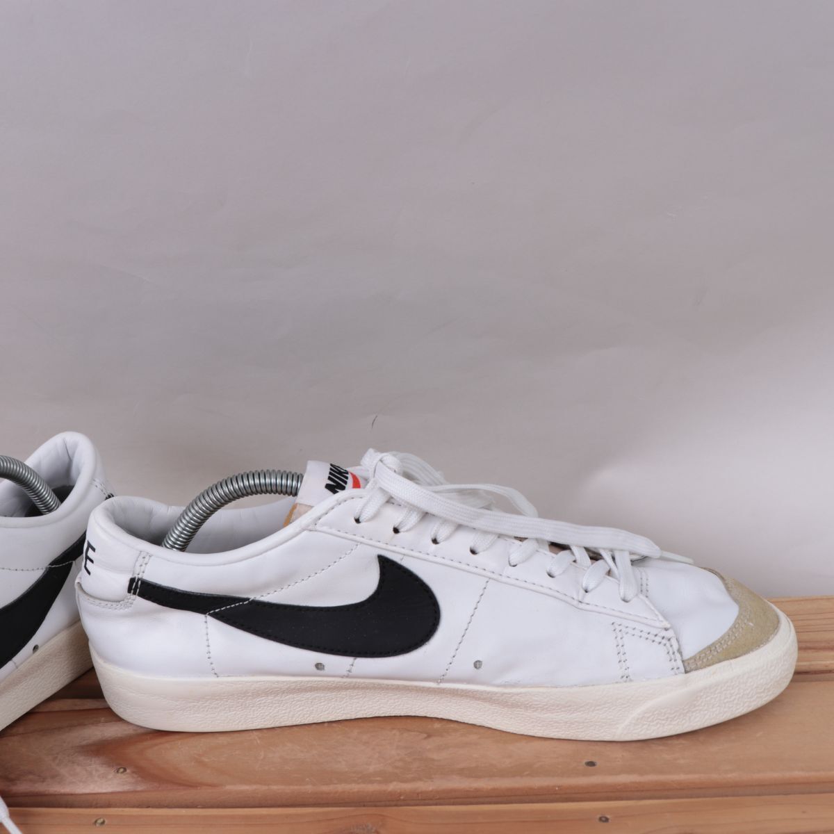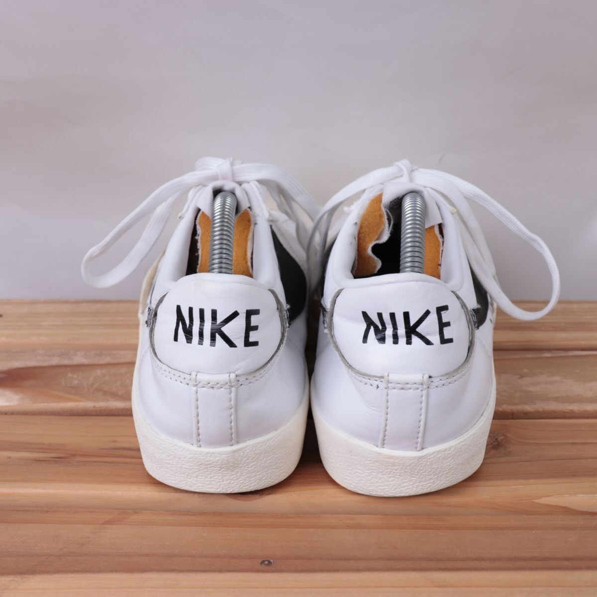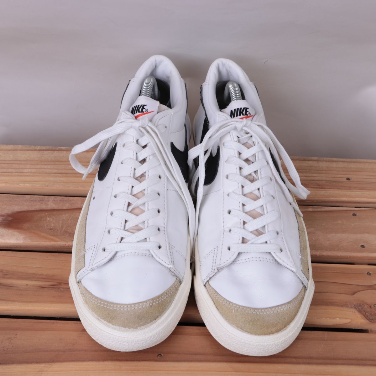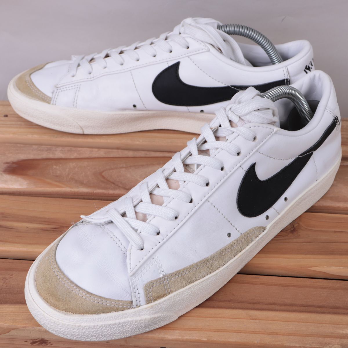 z2823 ナイキ ブレーザー ロー US9.5 27.5cm/白 ホワイト 黒 ライトグレー NIKE Blazer Low '77 Vintage ブレザー メンズ スニーカー 中古