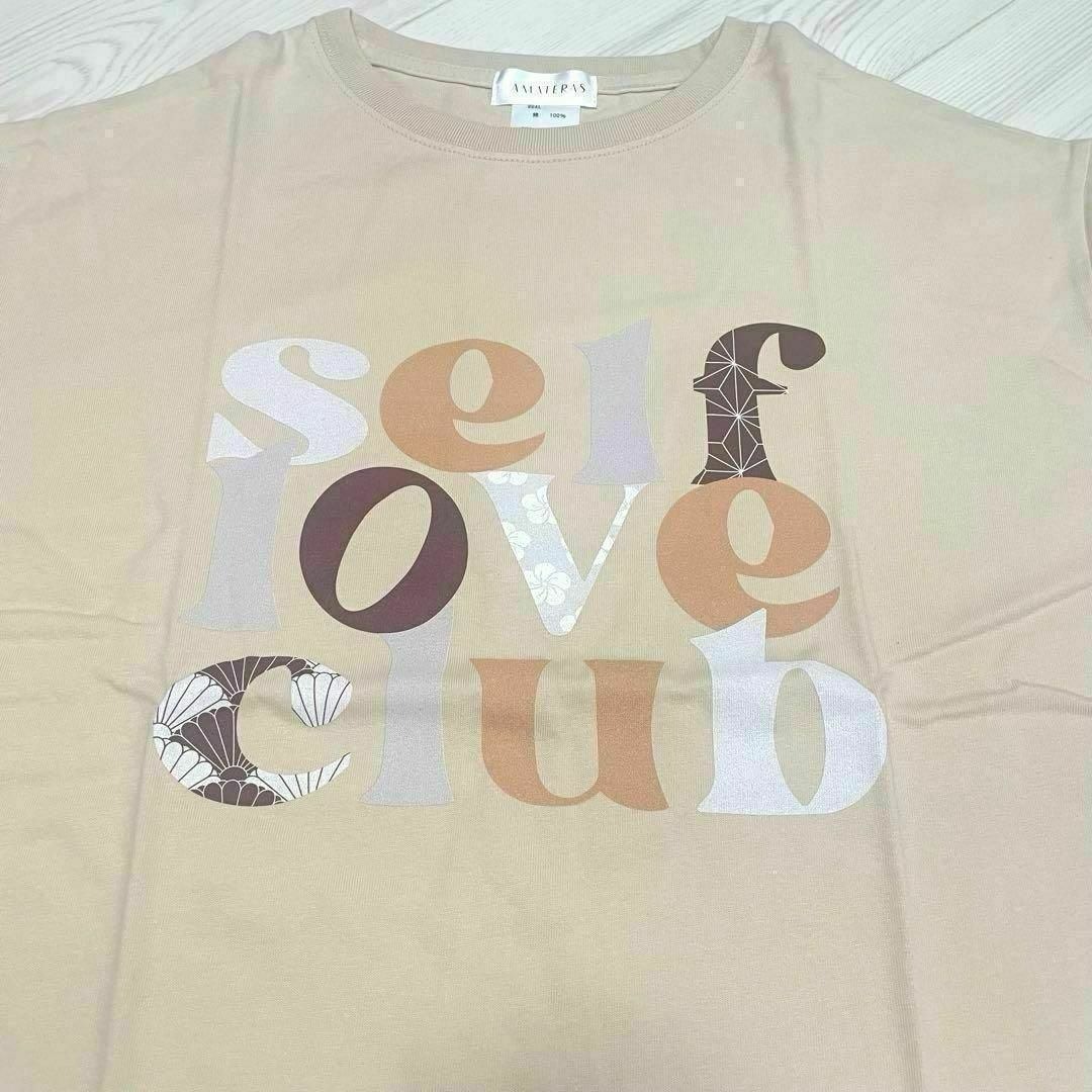 AMATERASのレディース用の半袖Tシャツ。世界的に流行っているメッセージ「self love」のグラフィックデザインがプリントされたのが特徴的なアイテムです。