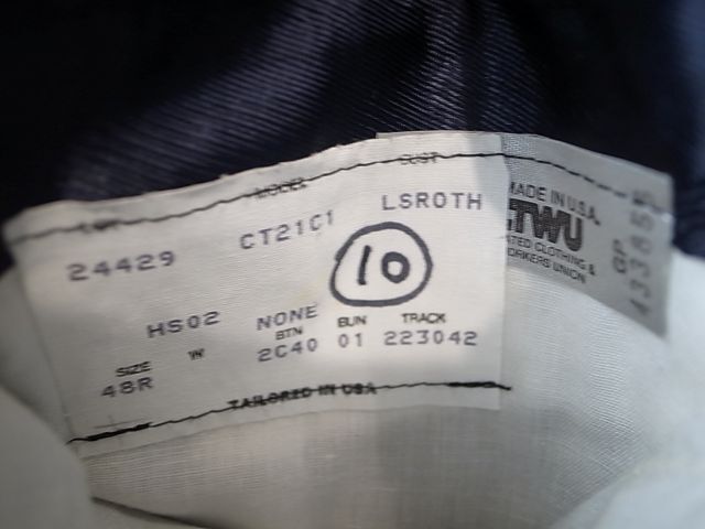 ◆ブランド 「ULTIMA MODA BY HAL'S」 アメリカ古着 ●サイズ表記 48R 実寸サイズ 5XL(6L)相当 肩幅…51cm(肩先から肩先の間の長さ) 身幅…66cm(両脇を横直線に結んだ長さ) 着丈…81cm(後衿ぐり中央から後身頃裾) 袖丈…63cm(袖付けの肩先から袖先) ※平置き状態での素人採寸ですので、多少の誤差はご了承ください。 ●素材…100%PURE WOOL オールシーズン対応 ●色…紺 ●ポケット… パッチポケット ●裏地…総裏仕立て ●ベント…センターベント ●製造国表記…USA ●状態…使用感は少ない美品です。 ★送料 全国一律 700円 佐川急便 (北海道900円 沖縄その他離島1700円) ※複数ご購入の場合、同梱発送可能です。 |