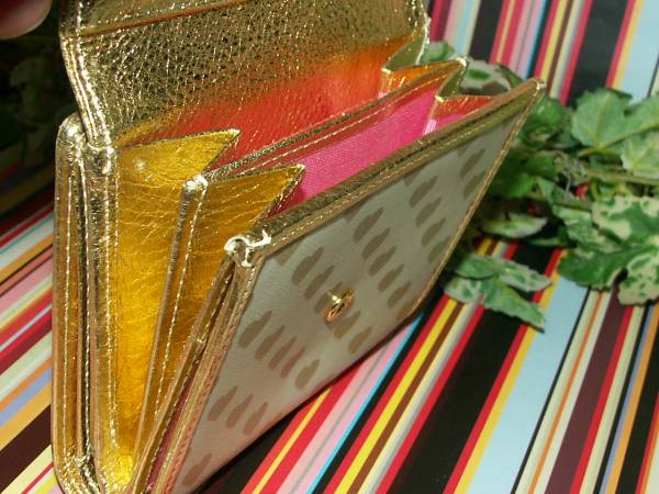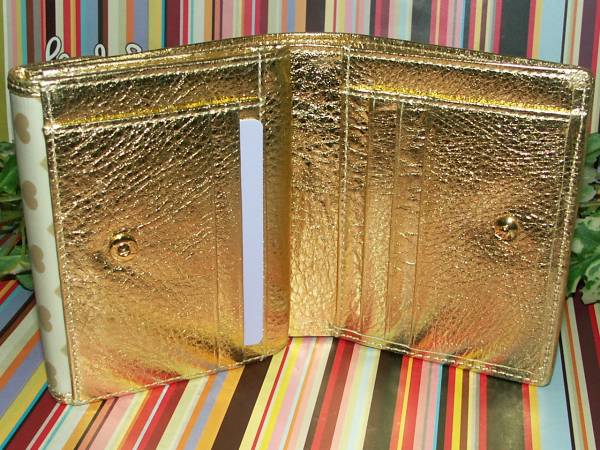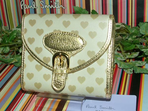 【871】 ★新品 『ポールスミス』 ゴールドハートプリント財布 ★国内正規品 : スタイル・インデックス株式会社 ★素材 : 牛革 (熱転写プリント) ★カラー : ゴールド / 裏地 ピンク 札入れコイン入れは仕切りつき カード入れ×5 ・ 他収納×4 ★箱なし特価 ※取扱いには注意しておりますが、保管ヨゴレ等はご了承ください。 よろしくお願いします ◆◇◆◇◆◇◆◇◆ 入札前に必ずご覧ください。 ◆◇◆◇◆◇◆◇◆ ※自己紹介にも注意事項を記載しているので必ずご覧ください。 ※出品商品すべて正規品(本物)です。 ※新品箱なし品の場合取扱いには注意してますが少々の保管傷・汚れ等は予めご了承ください。 (出来る限り画像や文章で確認出来る様にしておりますが 、画像に写りきらない場合もございます。) ※完璧を求めている方・神経質な方は入札をご遠慮下さい。 ※ご連絡や発送は平日のみの対応となります。 土日祝日は対応しておりませんので予めご了承ください。 (お急ぎの方は入札前に質問欄よりお問い合わせください。) ※同梱発送可能ですが、大きさにより送料異なります。 ※デジカメフラッシュ撮影です。 (光の関係・モニター状況によるカラーの違いは生じますので予めご了承ください。) ※値下げ交渉・ラッピング・入札後のキャンセル等は対応できません。 ※喫煙者はいません。 ☆宜しくお願い致します☆ | ||||