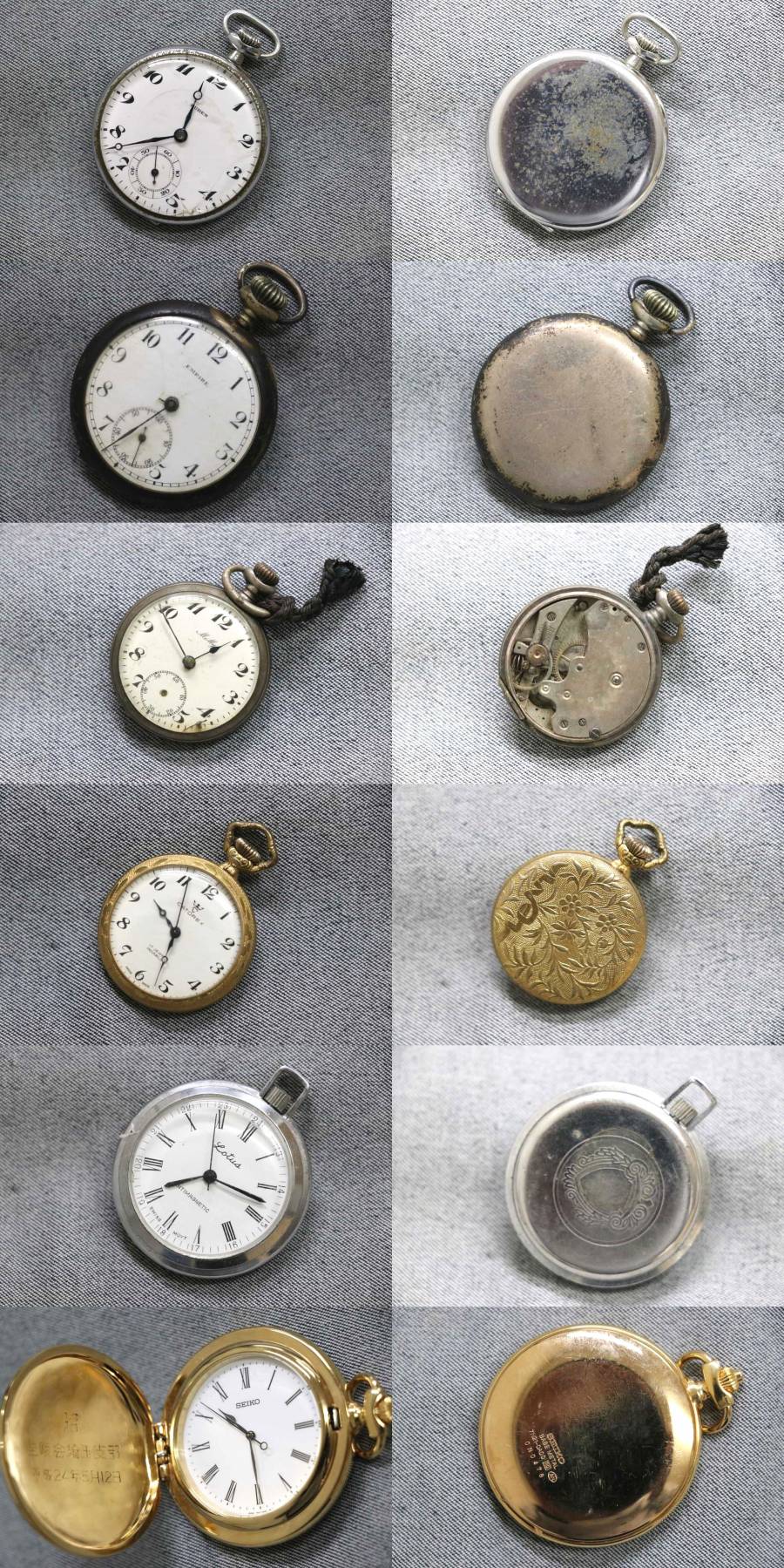 1円~ 【懐中時計】逓信省 セイコー など 12個 クオーツ 1個 計13個 まとめて ジャンク |