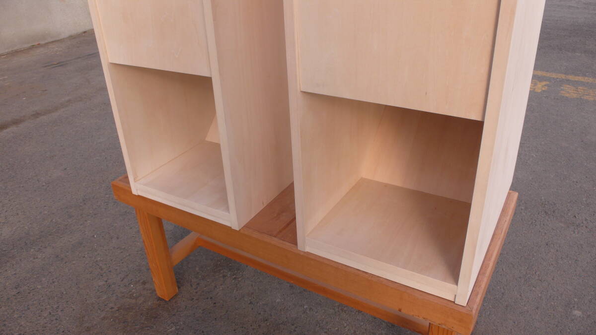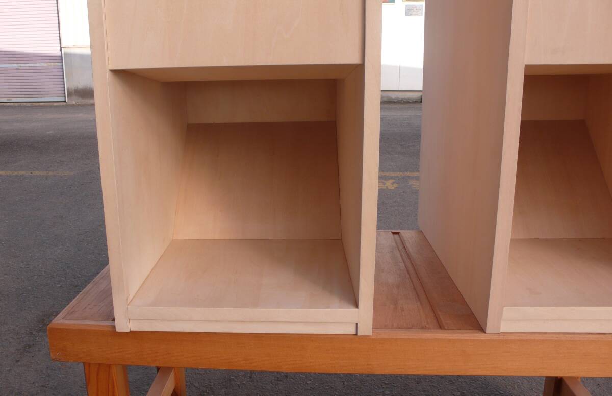 材質はシナのランバーコア合板。建築用資材の中から特に芯材の密度の高いものを選んで