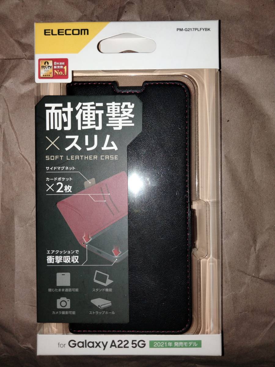 便利な7つの機能を搭載した、革のようなやわらかな風合いのGalaxy A22 5G(SC-56B)用ソフトレザーケース(手帳型)です。