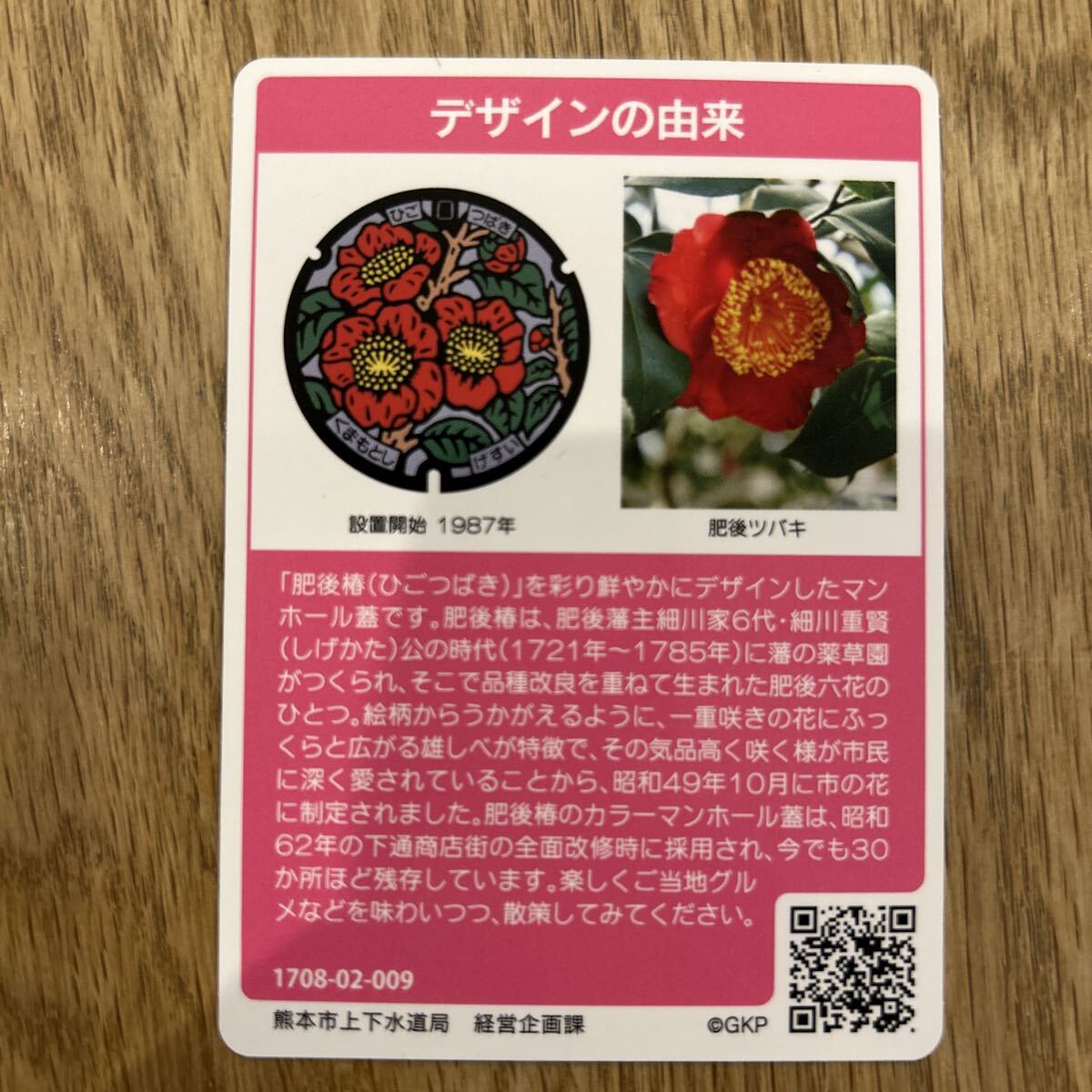 商品は熊本市のマンホールカードです。入手後すぐにファイルに入れて保存していましたので綺麗な状態を保っています。