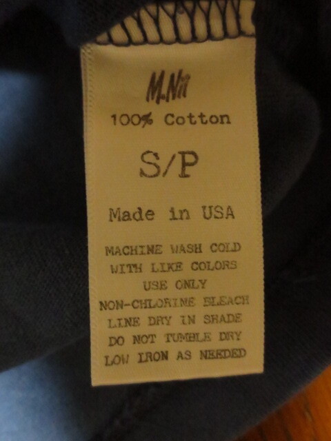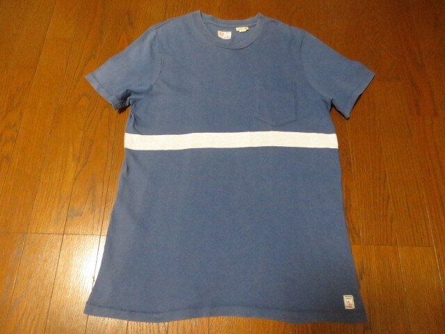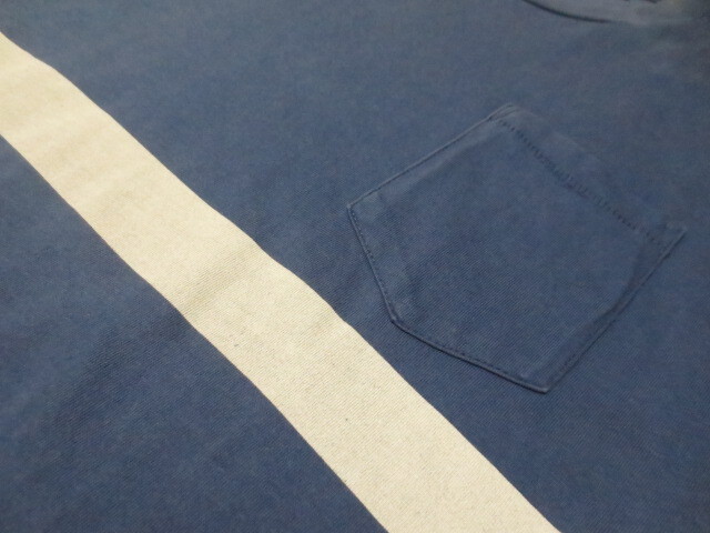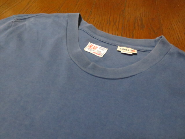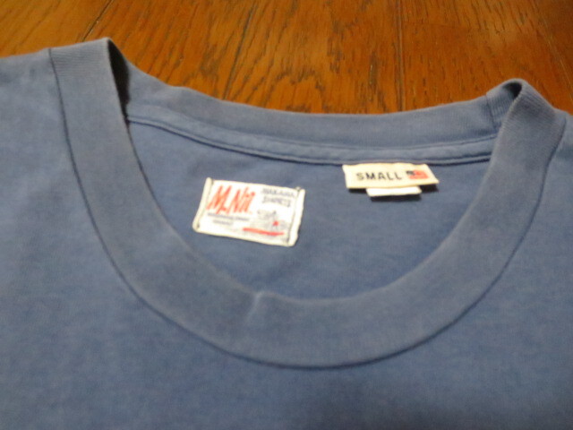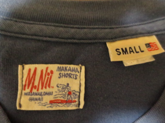 M. Nil MAKAHA SHORTS made in USA エムニーイ マカハショーツ 半袖ラインプリント入り 胸ポケットティーシャツ 青系 S フェード