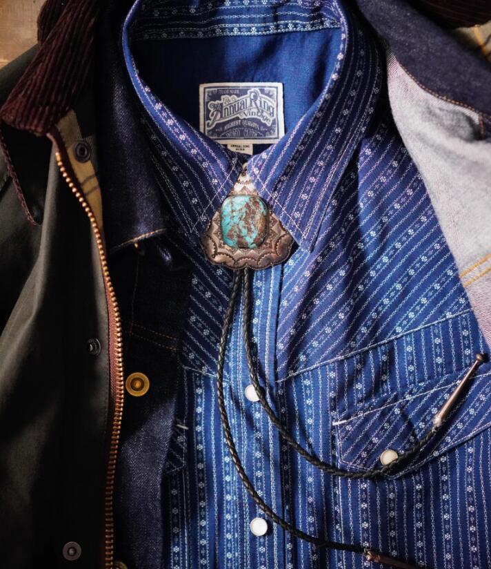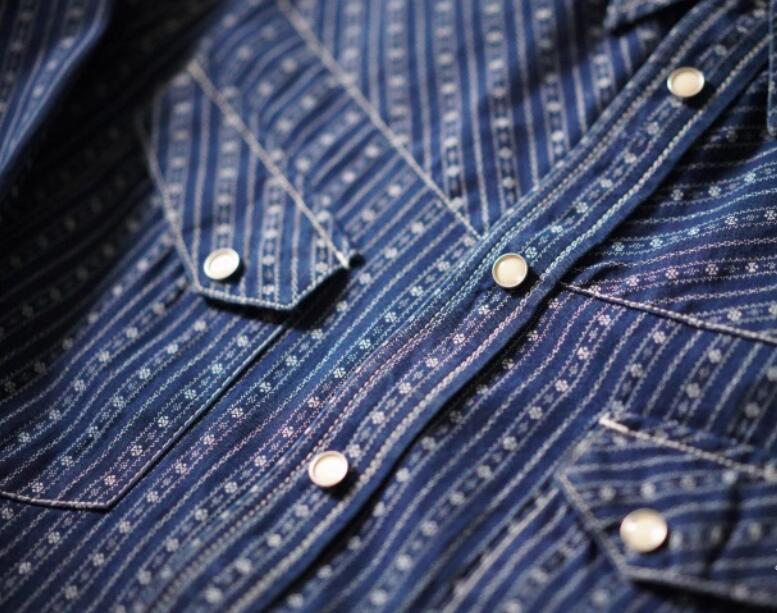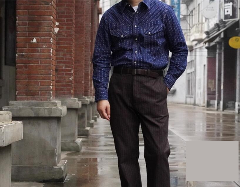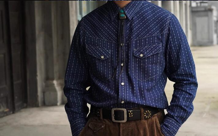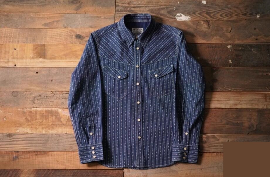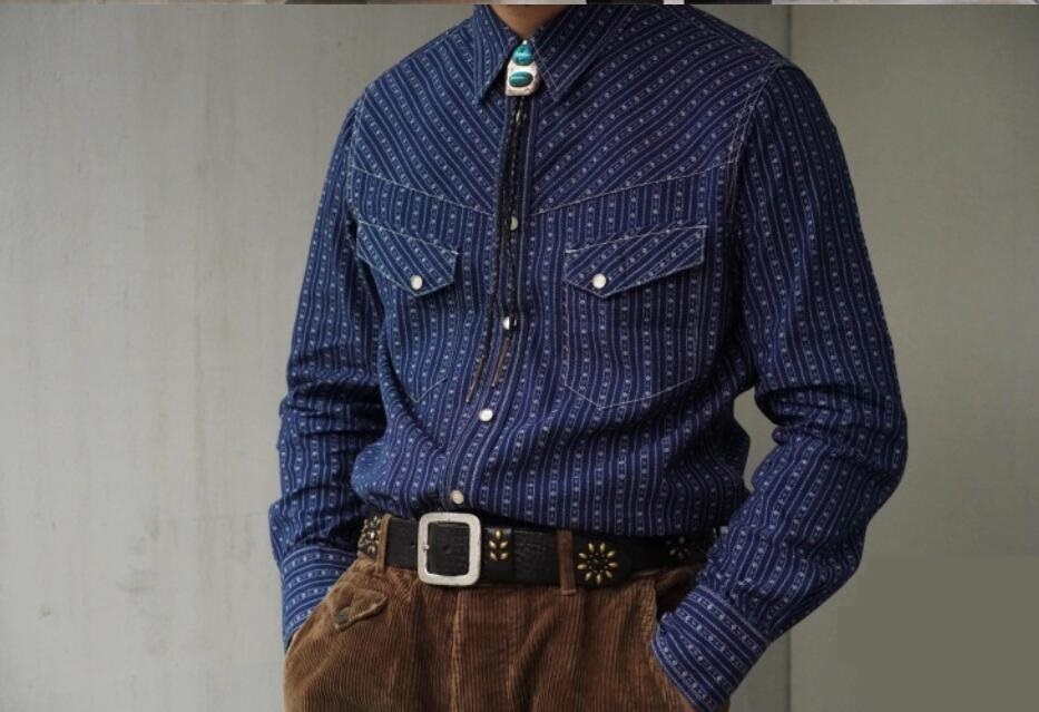 新入荷本格派 高級 ヴィンテージ 復刻 6oz インディゴ染 ウエスタンシャツ 藍染 サイズ メンズ ロカビリー レトロ デニム ブルー