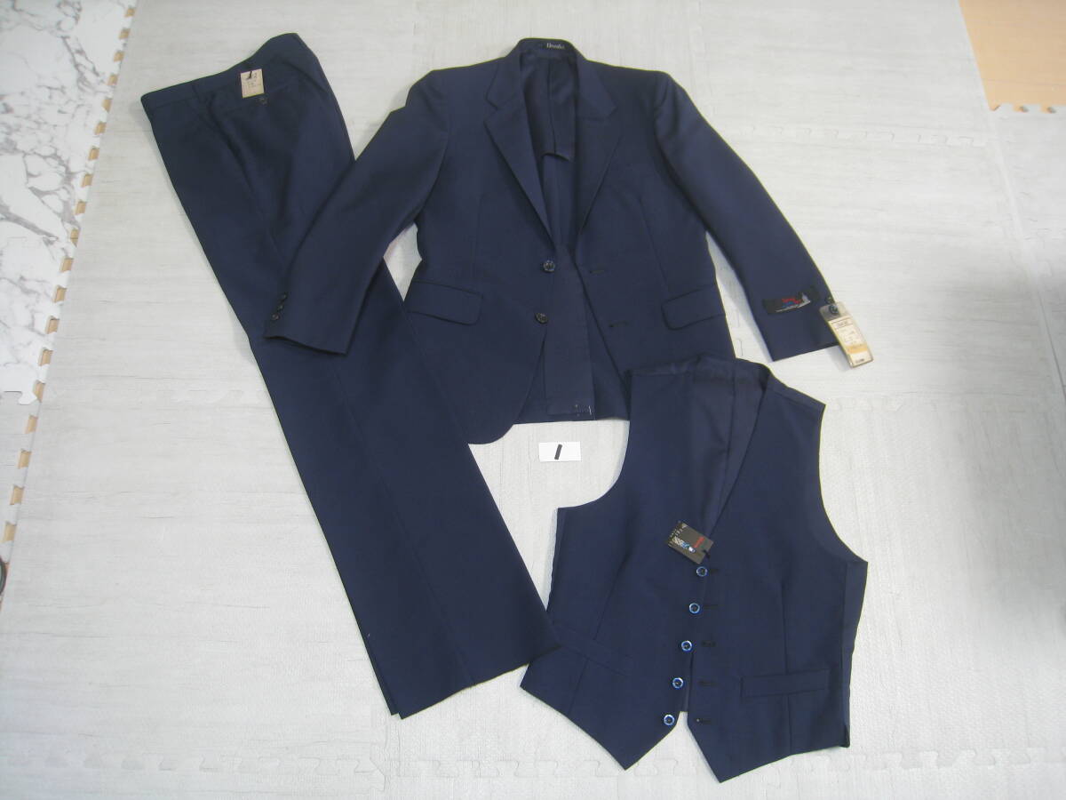 NO.1 未使用 Eleven Suit NEW YORK スリーピース スーツ 毛 ポリエステル モヘア 紳士服 胸囲80 胴囲76 身長165 YA-4 訳有