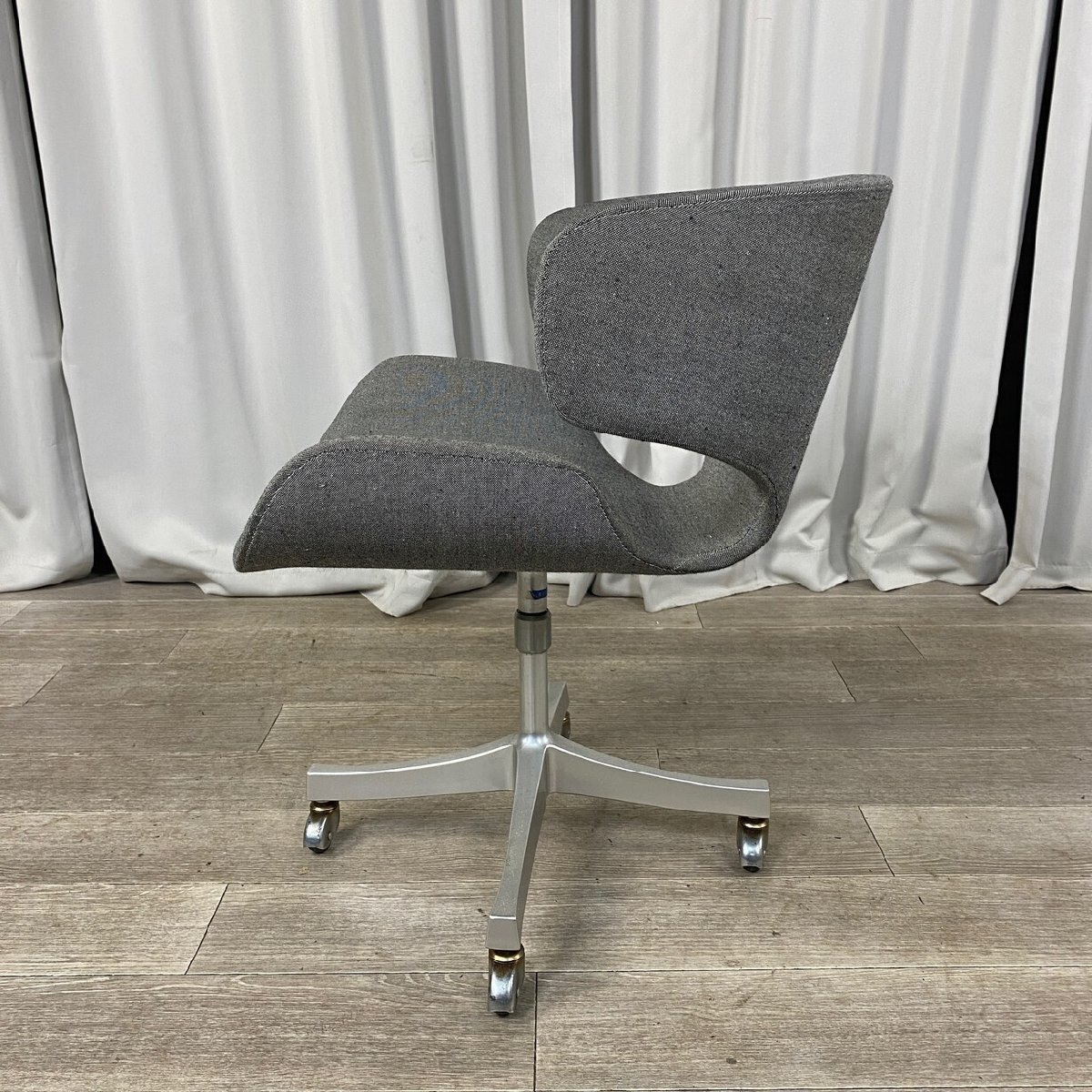 | ※本品は神奈川県発の商品です。 当ストアでは静岡発と神奈川発の商品があります。まとめて取引や直接引取をご検討されている場合はご注意ください。 外形寸法:幅53.5×奥行き58×高さ73cm 座面高さ43cm ※寸法や重量は実測値ですので誤差が生じる可能性があります。予めご了承下さい。 ![]() 天童木工 / TENDO 1940年に天童木工家具建具工業組合として創立。1942年に有限会社天童木工製作所、1948年に株式会社への変更を経て天童木工になりました。もともとは弾薬箱やGI型飛行機の木製おとり機等といった軍需品を製作していましたが、終戦を機に戸棚や飯台、流し台といった家具作りを開始。プライウッドの成型技術を日本で最初に確立し、業界でもトップクラスの加工技術として高く評価されています。創立以来「良いものをより永く」の基本理念の元、「暮らしに彩を添え、豊かな時を奏でる家具作り」が目指されています。 状態 全体的に毛玉感あります。少々の傷や汚れ、金属部分のサビはあります。 商品保管場所(神奈川県秦野市)の当方倉庫にて直接手渡しも可能です。 車両の積み込みを当方で行う、又は手伝うことはできません。商品を積載可能な車両で積込み作業ができる方必要人数でお越し下さいませ。 取り置き期間等ありますので下記の発送詳細をご参照ください。 | ||||||||||||||||||||||||||||||||||||||||||||||||||||||||||||||||||||||||||||||||||||||||||||||||||||||||||||||||||||||||||||||||||||||||||||||||||||||||||||||||||||||||||||||||||||||||||||||||||||||||||||||||||||||||||||||||