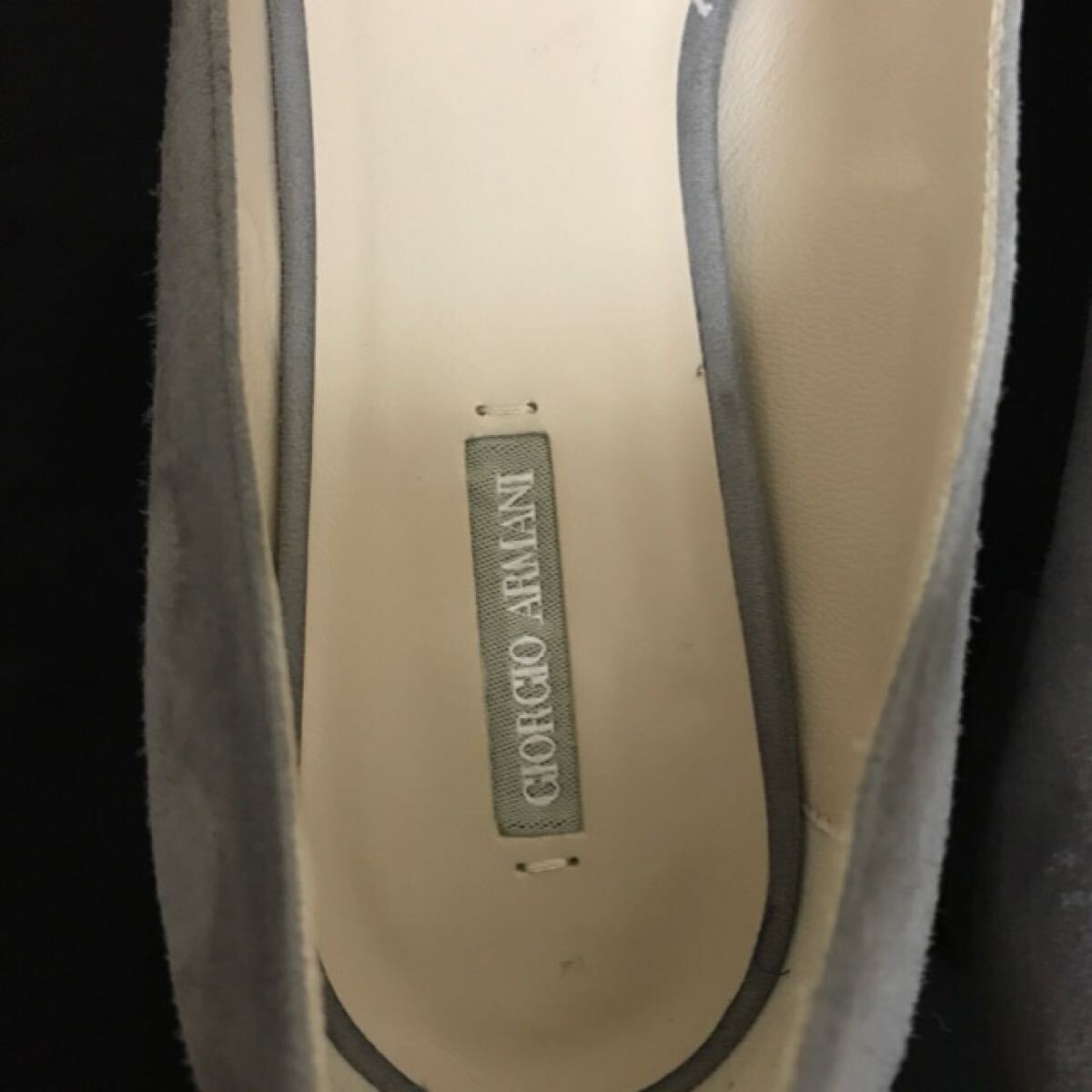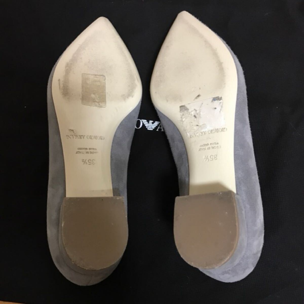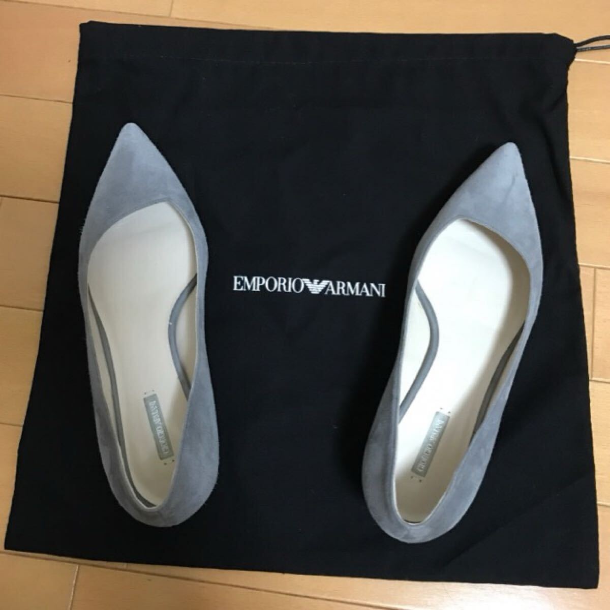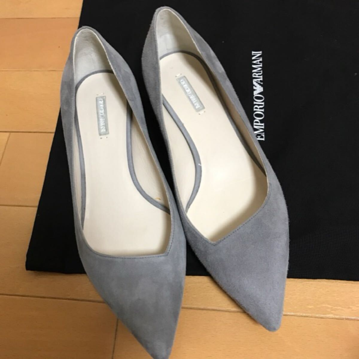 EMPORIO ARMANIのスエードフラットシューズです。ポインテッドトゥのデザインで、上品な印象を与えます。