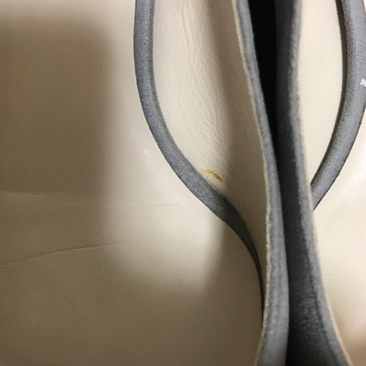 スエード素材のグレーのハイヒールパンプス、専用袋付き。