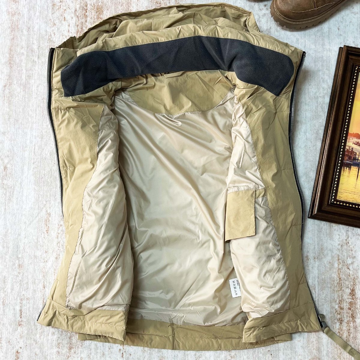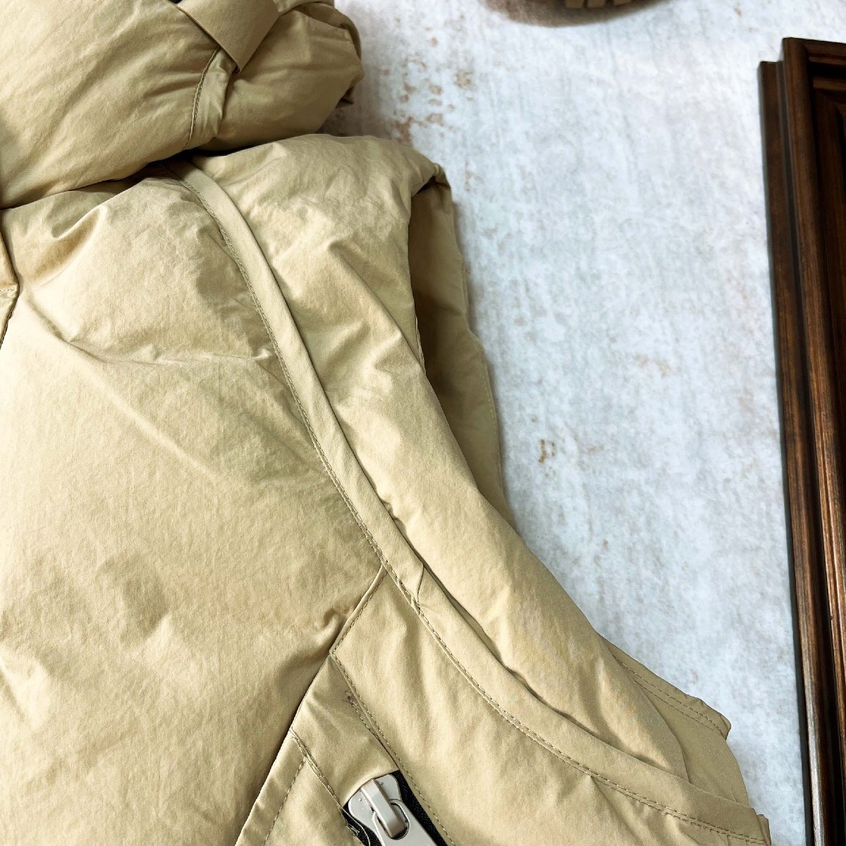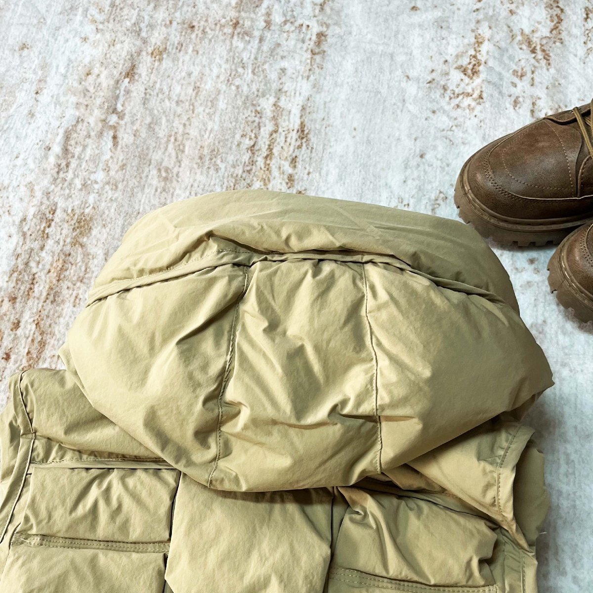 ボディーは自社で厳選された高級なダックダウンを贅沢に採用、たっぷりと空気を含んでおり、体を暖かく包み込みます。表地に素材感の高密度素材を使用して防風効果はもちろん、心地よいタッチ感を感じることができます。裏地は滑りのいい素材を使うことで、背中の引っかかりを軽減させてスムーズな着脱をかなえているのです。