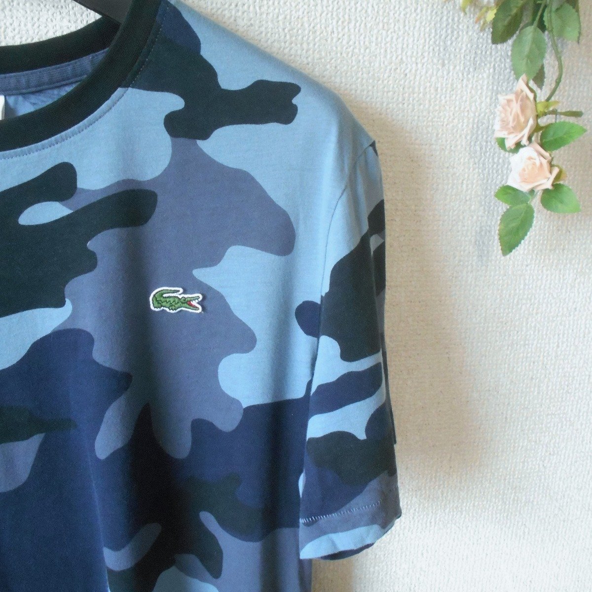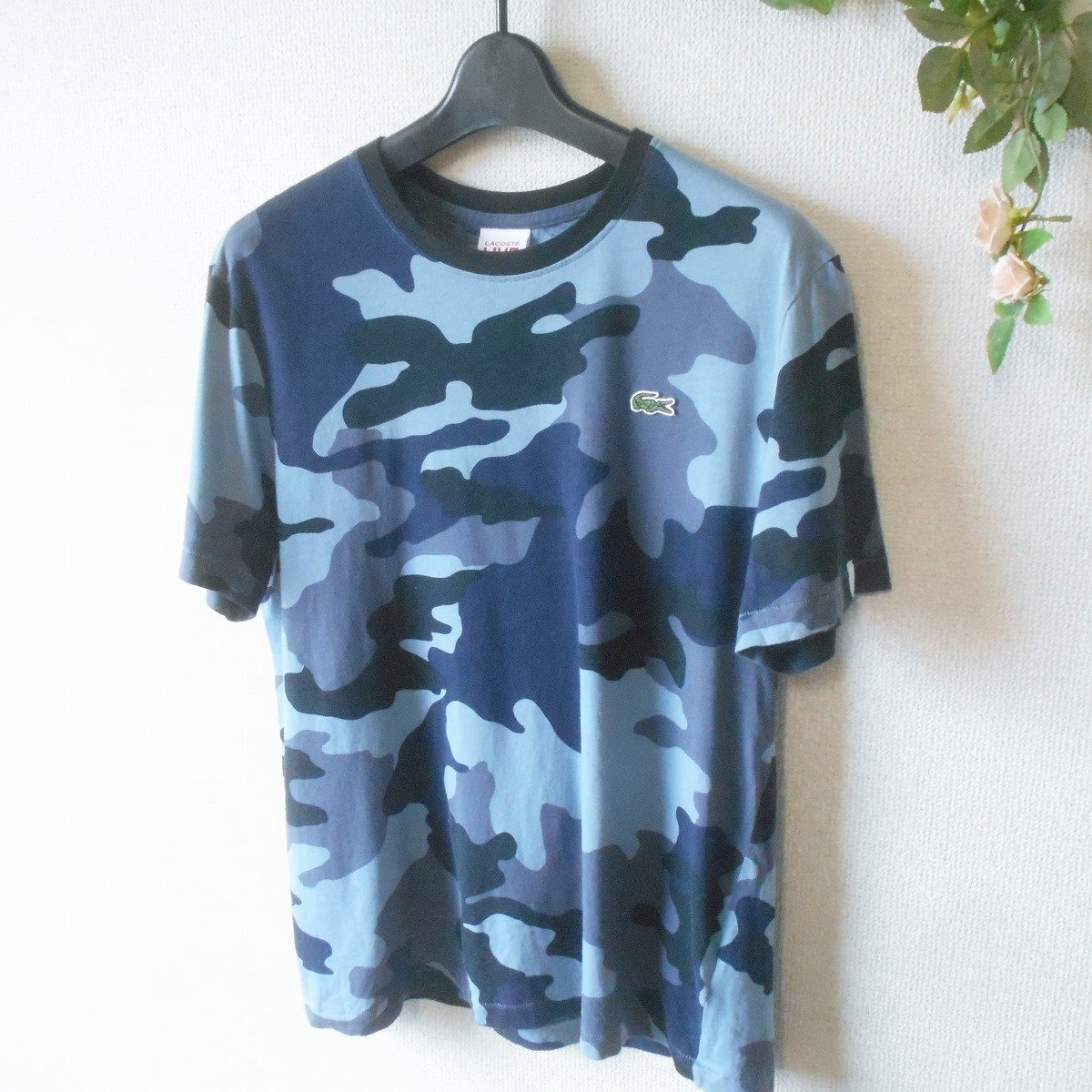 【ポイント】ラコステライブのメンズ用Tシャツになります。お色はネイビー、水色、グレー等、多色使用の迷彩柄で夏を中心に着ていただけるお品です。
