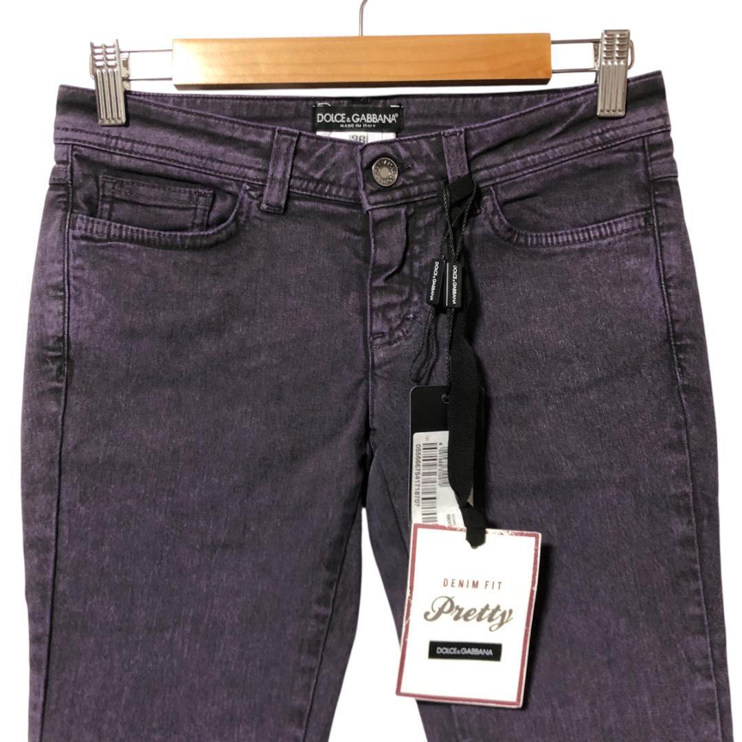 DOLCE&GABBANA ドルチェ&ガッバーナ PRETTY デニムパンツ プレート ストレッチ 裾ジップ 36 パープル イタリア製 アンクル丈 レディース M8