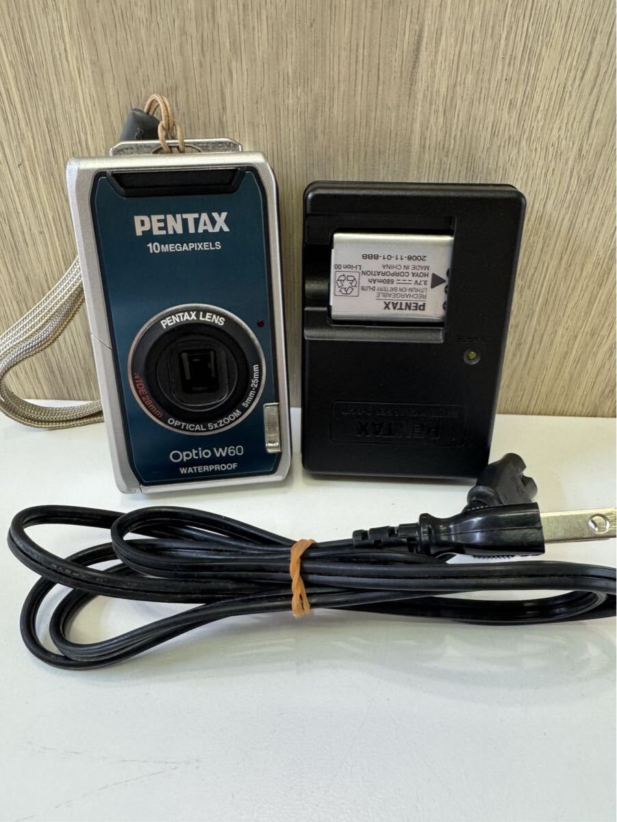 PENTAXペンタックス Optio W60 防水カメラ デジタルカメラ 青ブルー デジカメ カメラ 充電器付き 現状品