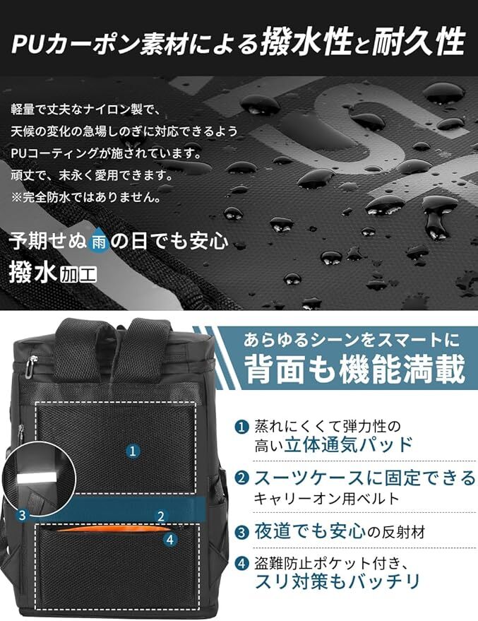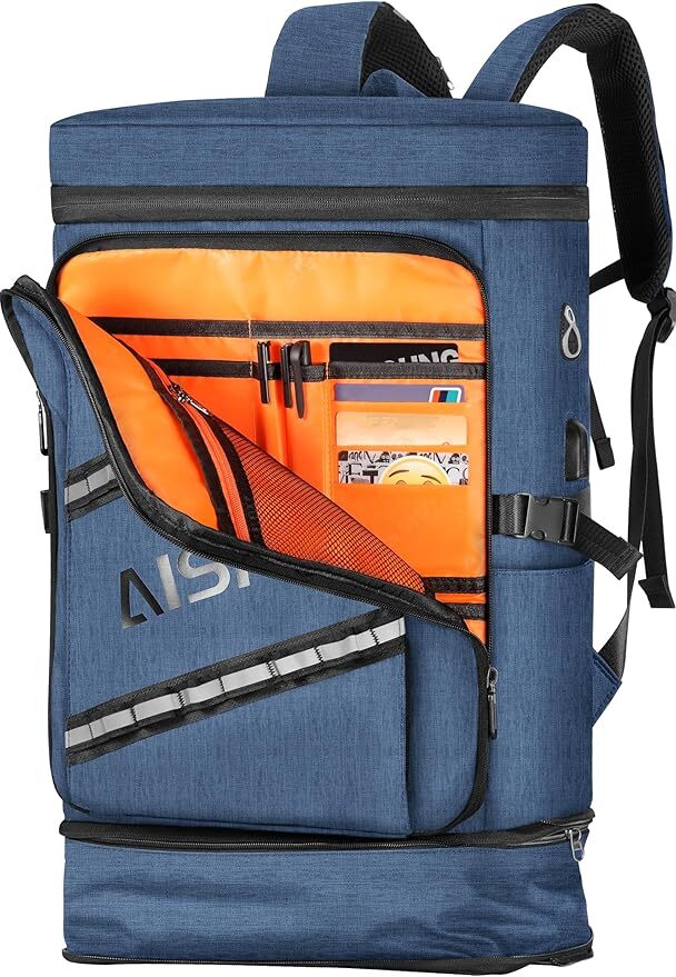ブルー色 AISFA リュック メンズ リュックサック スクエア バックパック 17インチ PC ビジネス USB充電ポート付き 30L 大容量