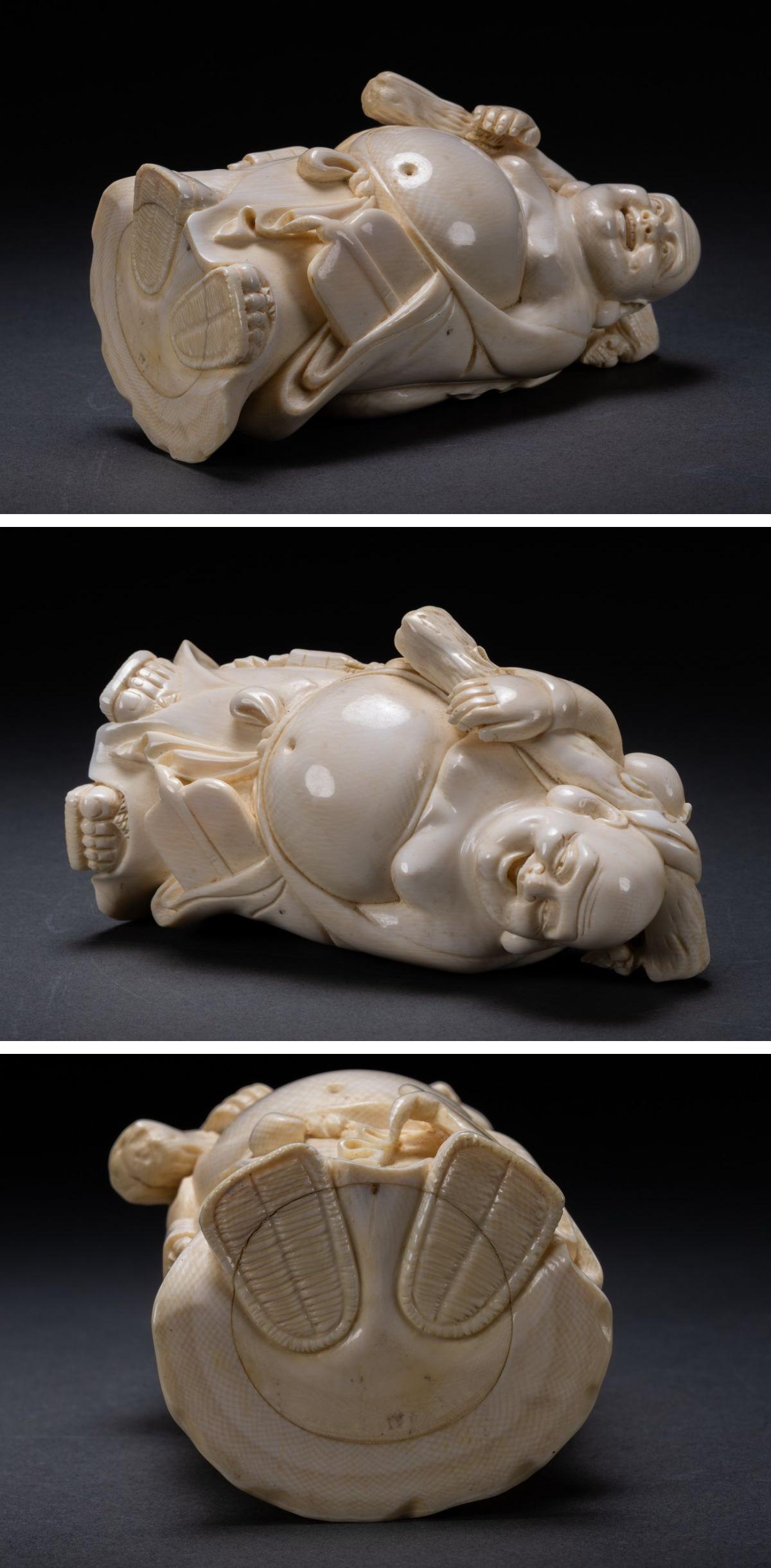 【雲錦】某有名オークション購入 時代物 特殊白材 巨大布袋造像 古置物 古擺件 古美術 時代コレクションZ-119