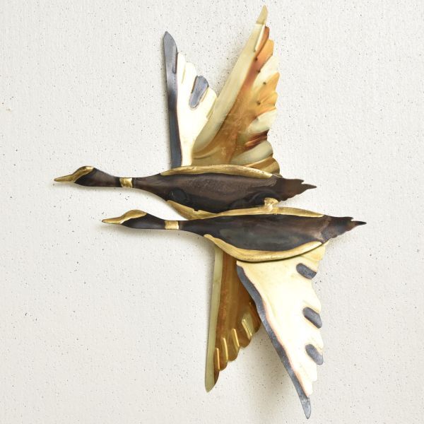 1点1点ハンドメイドで真鍮板を加工、溶接によって芸術性の高いカモ(またはガチョウ)を見事に表現しています。