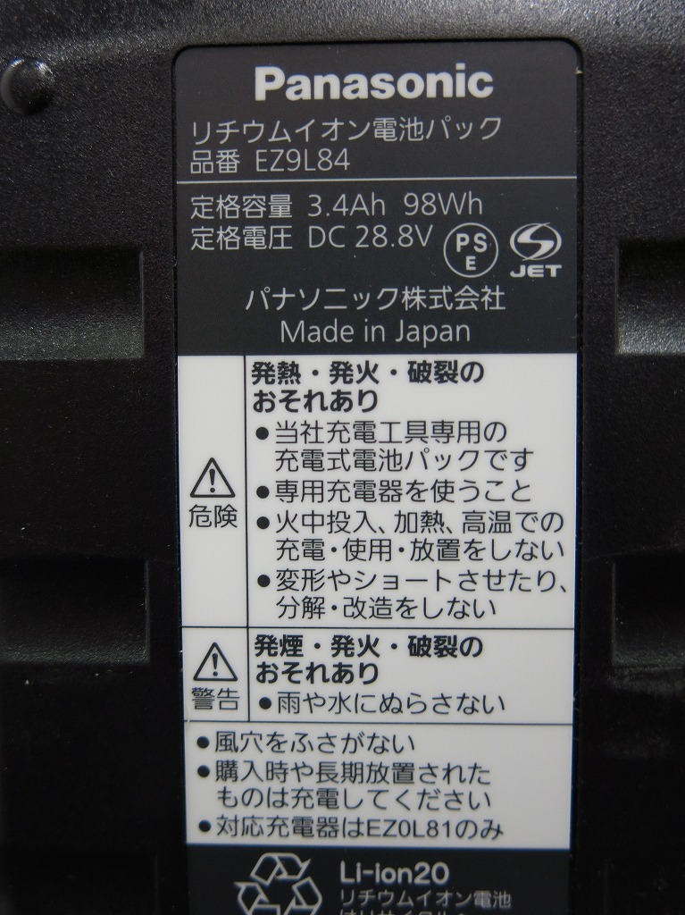 期間限定セール 【未使用】 パナソニック Panasonic EZ9L84 リチウムイオン 電池パック (28.8V・3.4AH)