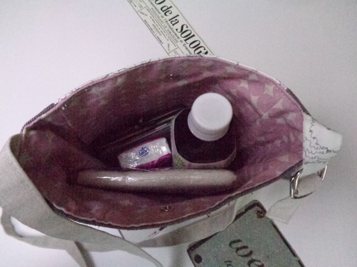 | 沢山の品の中から、ご覧いただきありがとうございます。 お店には売っていない、ハンドメイドの品の温かさがお届けできますように… 羊の模様が可愛い生地で、ミニトートバックを作りました。 ♪サイズ 深さ・・・バッグ真ん中位置で25 横・・・ペタンと置いて入口位置で21 肩紐・・・最長で118 マチ・・・約7 ♪素材 表・・・コットンリネンキャンバス、16センチのファスナー、Dカン、接着芯、肩紐にコットンリネンキャンバス、ソフトデニム 内側・・・コットンリネンキャンバス、スナップボタン、ボタン位置に力布 小ぶりのトートバッグですが、マチがありますのでスマホ、財布、タオルハンカチ、ペットボトルなど収まります。表にポケットも付いていますので、お出かけに便利なバッグになっています。 表のファスナーポケットの入り口は15センチです。鍵やパスカードなど、飛び出さず安心です。キーホルダーの長さは、約10センチです。反対側のポケットの深さは、18センチです。 コットンリネンの生地には、接着芯を貼りしっかりとさせました。 内側は、ドッド模様のコットンリネンキャンバスで。スナップボタンで、入り口は留められます。2個のDカンで、肩紐の長さが調整できます。 毎日の小物や、バッグを製作しています。 どうぞよろしくお願いいたします。 ★リネン、コットンは天然素材ならではのネップ、スラブ等ございます。 ★雨、汗、摩擦などで、色落ちする場合がございます。 ★生地の色、厚さに合わせなるべく糸を変えアイロンをこまめに掛けながら、職業用ミシンで丁寧に製作しています。 | |||
