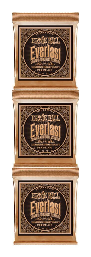 即決◆新品◆送料無料ERNIE BALL 2546 ×3 [12-54] Everlast Medium Light Coated Phosphor Bronze アコースティックギター弦/メール便