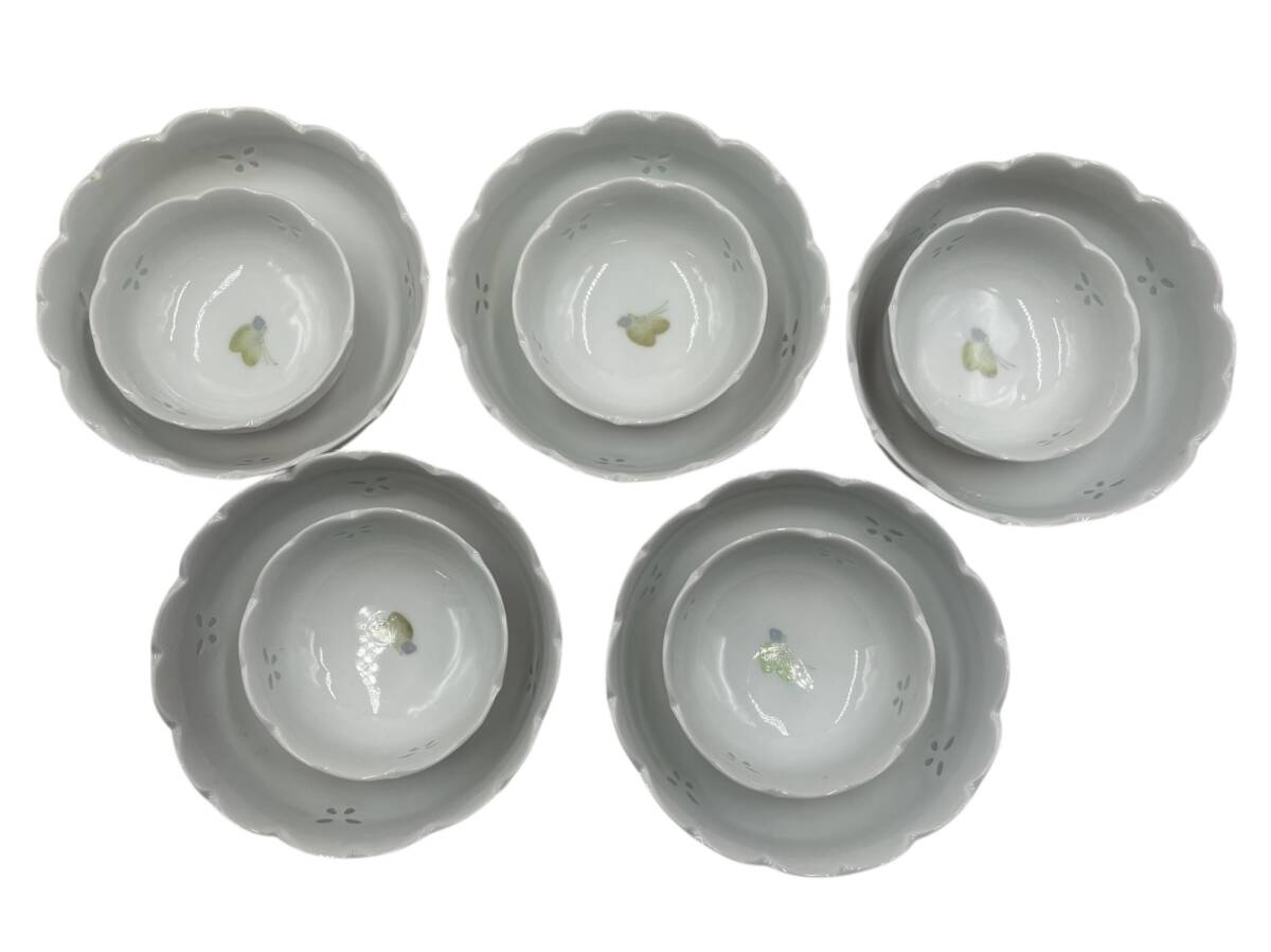 | 【仕様】 商品ランク:A(使用感はほぼありませんが、親小鉢1点に欠けと金彩の一部剥がれがあります) 外装状態:親小鉢一点欠けあり。若干金彩の剥がれあり。 付属品:木箱2点(共箱) 備考:全体的には綺麗な状態ですが、上記の部分的なダメージがあります。 |