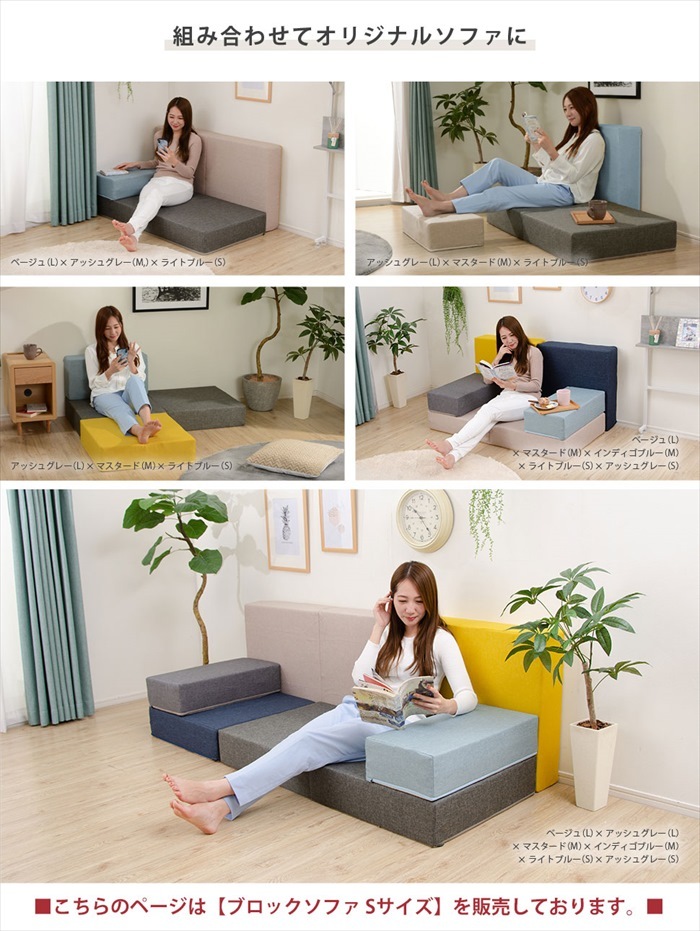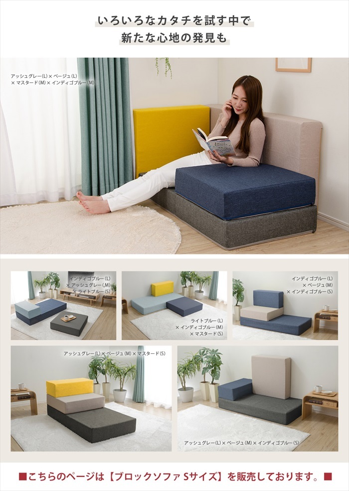 | ※【同シリーズ】のリンクは当店のヤフオク店のページへ進みます。 ● ブロックソファ Lサイズ ● ブロックソファ Mサイズ ● ブロックソファ Sサイズ ※このページは[ブロックソファ Sサイズ]を販売しております。 |