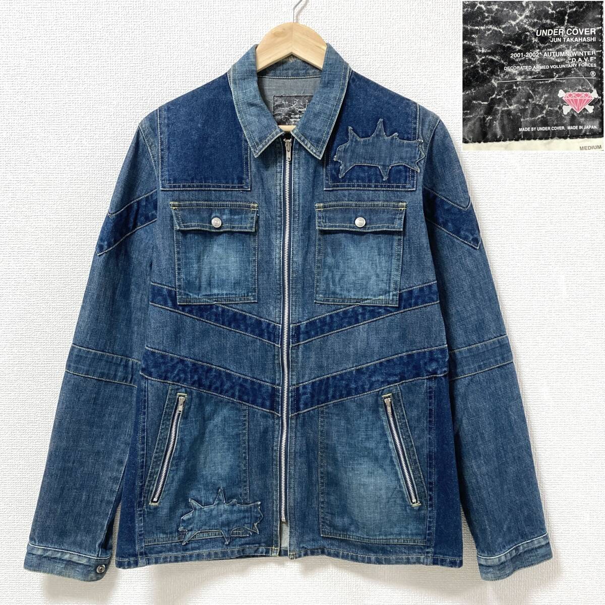 2001AW UNDERCOVER 宝飾期 デニムジャケット インディゴ Mサイズ アンダーカバー DAVF ジップ ブルゾン Gジャン VINTAGE archive 4110415